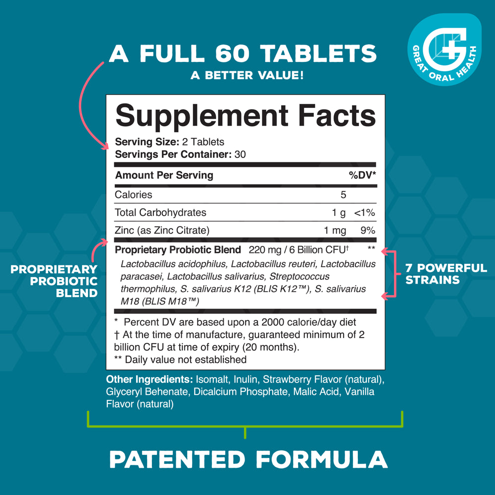 Great Oral Health Patented 7-Strain Formulation of Oral Probiotics, with BLIS K12 & M18 Strawberry/Vanilla
