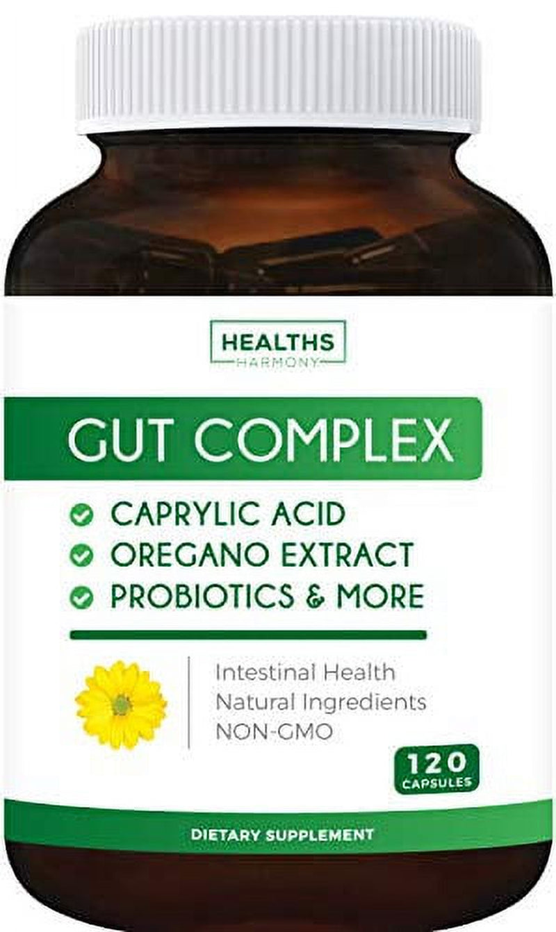 Gut Complex - Caprylic Acid, Oregano Oil & Probiotics (Non-Gmo) Supplement - 120 Capsules (No Pills)