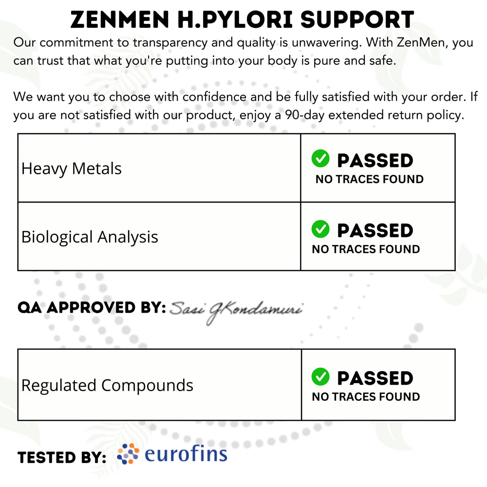 - What is ZenMen H. Pylori Relief? An herbal blend containing Lactobacillus Reuteri - 10 billion CFU of this highly beneficial micro-organism may be effective in providing relief against Helicobacter Pylori. Also contains: Zinc, Mastic Gum, Berberine, Licorice DGL and more.
