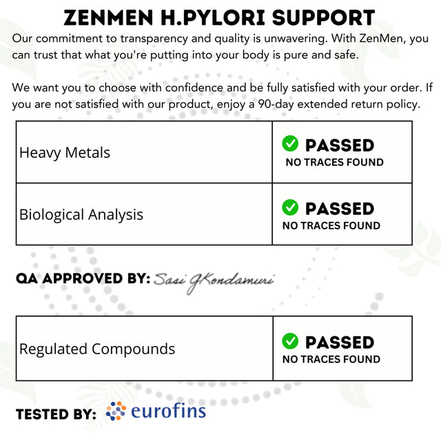 Have you been diagnosed with Helicobacter pylori? You might be experiencing a range of symptoms, from burping and bloating to nausea and burning sensations. Speak to your doctor about including H. pylori supplements. Zenmen thoroughly researches ingredients to craft formulas that target every aspect of your wellness issues. Our H. pylori blend makes the most of every capsule with 10 billion CFU of probiotic bacteria, mastic gum, and more. Plus, we’ve added ingredients others don’t. From bacteria-balancing broccoli to immune-boosting Cat’s Claw, Zenmen is changing the way you support healthy digestion and gastrointestinal comfort. Check and compare: ingredients such as licorice DGL can protect and lubricate healthy inner linings, and green tea is always the top pick for potent antioxidants and clean energy. Our vegan, non-GMO formulas are great for every lifestyle, and don’t require that you take handfuls of pills multiple times daily.