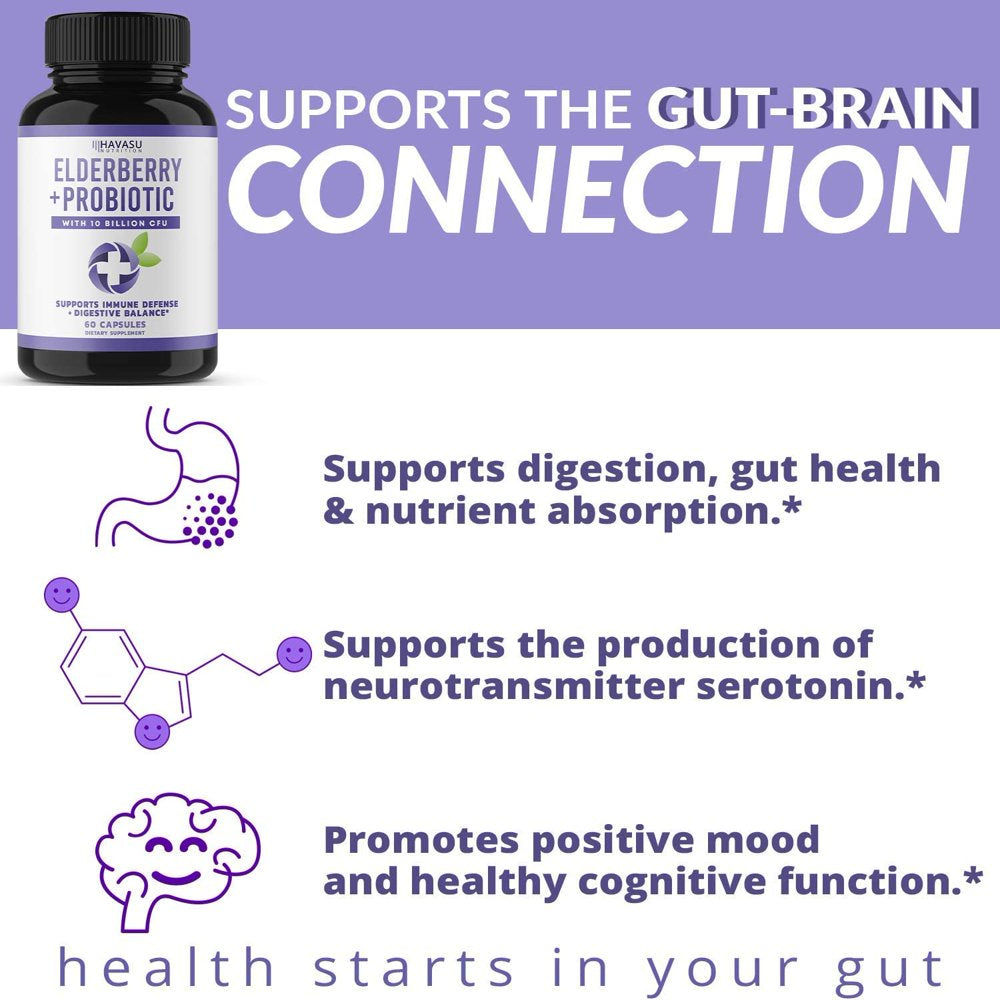 Havasu Nutrition Elderberry and Probiotics 10 Billion CFU; Approved Immune and Digestive Balance Probiotics for Women & Men; 60 Vegetarian Capsules with 4 Strains