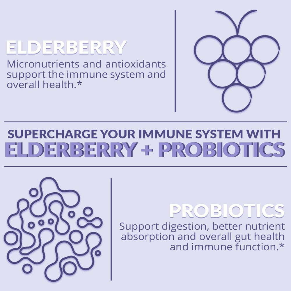 • Extra strength probiotic naturally boosted with antioxidants; based on research, we found that combining the immune boosting benefits of elderberry with the gut health benefits of probiotics actually work together as the gastro intestinal system is boosted with the probiotics and protected with the elderberry concentrate; with these ingredients working together, the effects are more noticeable & can be identified much quicker