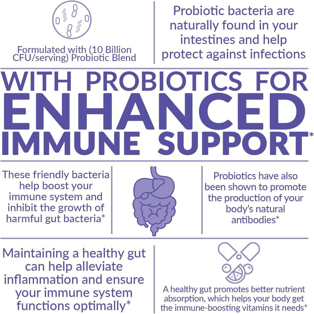• Naturally inspired probiotic supplement with immune support; contains four strains plus a concentrated amount of black elderberry in a vegetarian capsule, which ensures product stability; our probiotic daily blend naturally helps to support the stomach's digestive environment and supports the natural stomach balance; great for gut health, and occasional gas relief, bloating relief, constipation, leaky gut, digestive health, weight loss, immune system and intestinal health
