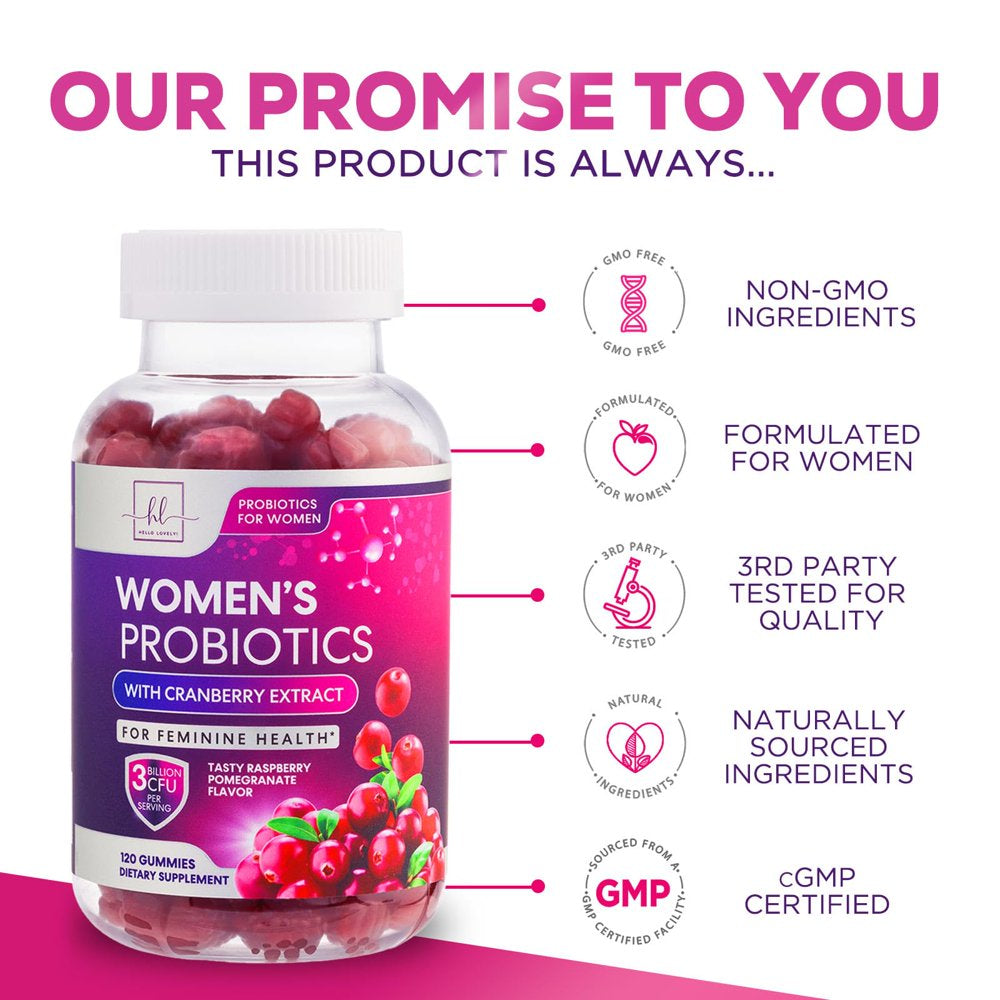 Hello Lovely! Probiotics for Women - Multi Strain Womens Probiotic Gummy W/Cranberry for Vaginal, Digestive, Ph & Immune Health Support, 3 Billion CFU Prebiotic & Probiotic Supplement - 120 Gummies