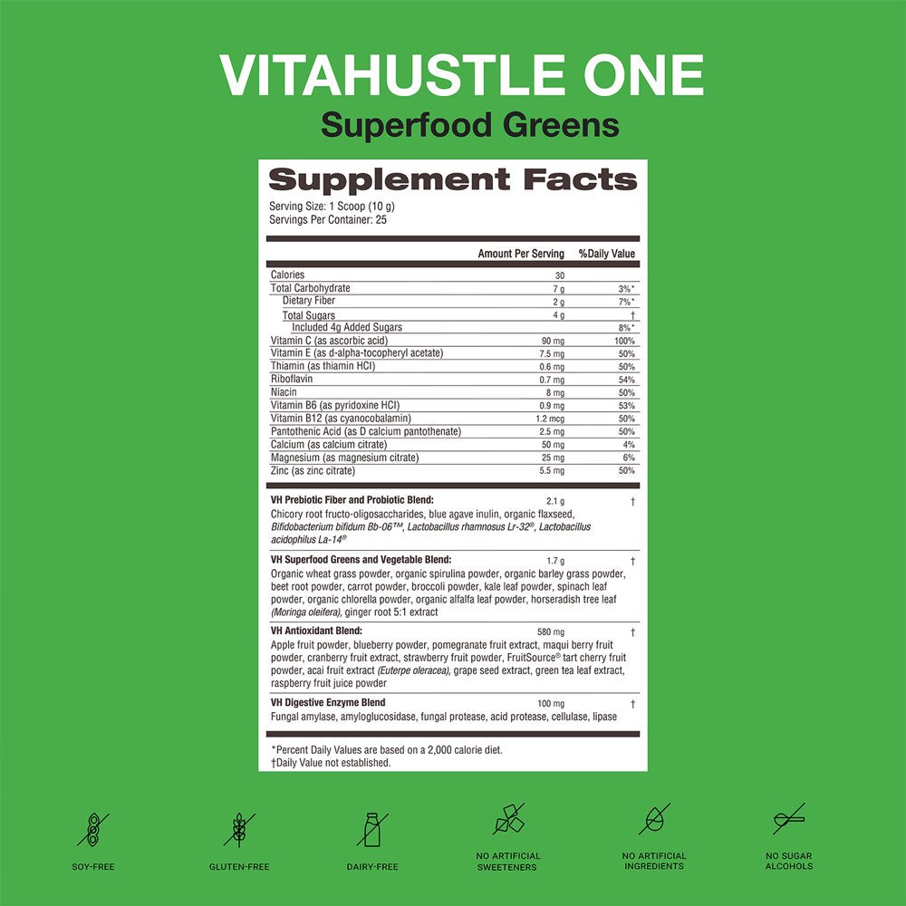 - VITAHUSTLE SUPERFOOD GREENS MIX: Contains 30 superfood greens, fruits & veggies to support digestion, detox and overall wellness