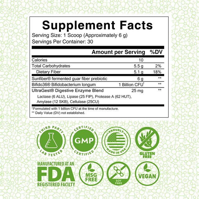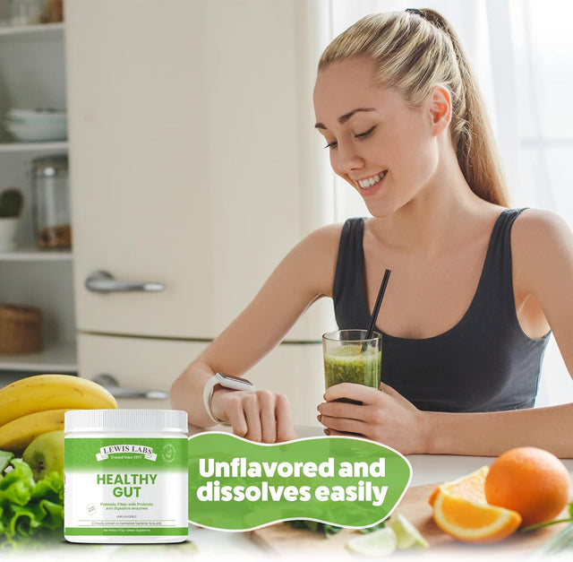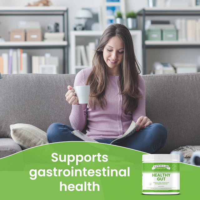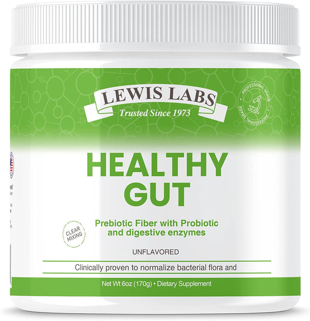 Lewis Labs Healthy Gut Prebiotic Fiber 6 Oz, Prebiotic Fiber with Probiotics, and Digestive Enzymes, Gut Prebiotic Fiber, Keto Friendly, Gluten Free, No MSG, Vegan Healthy Gut