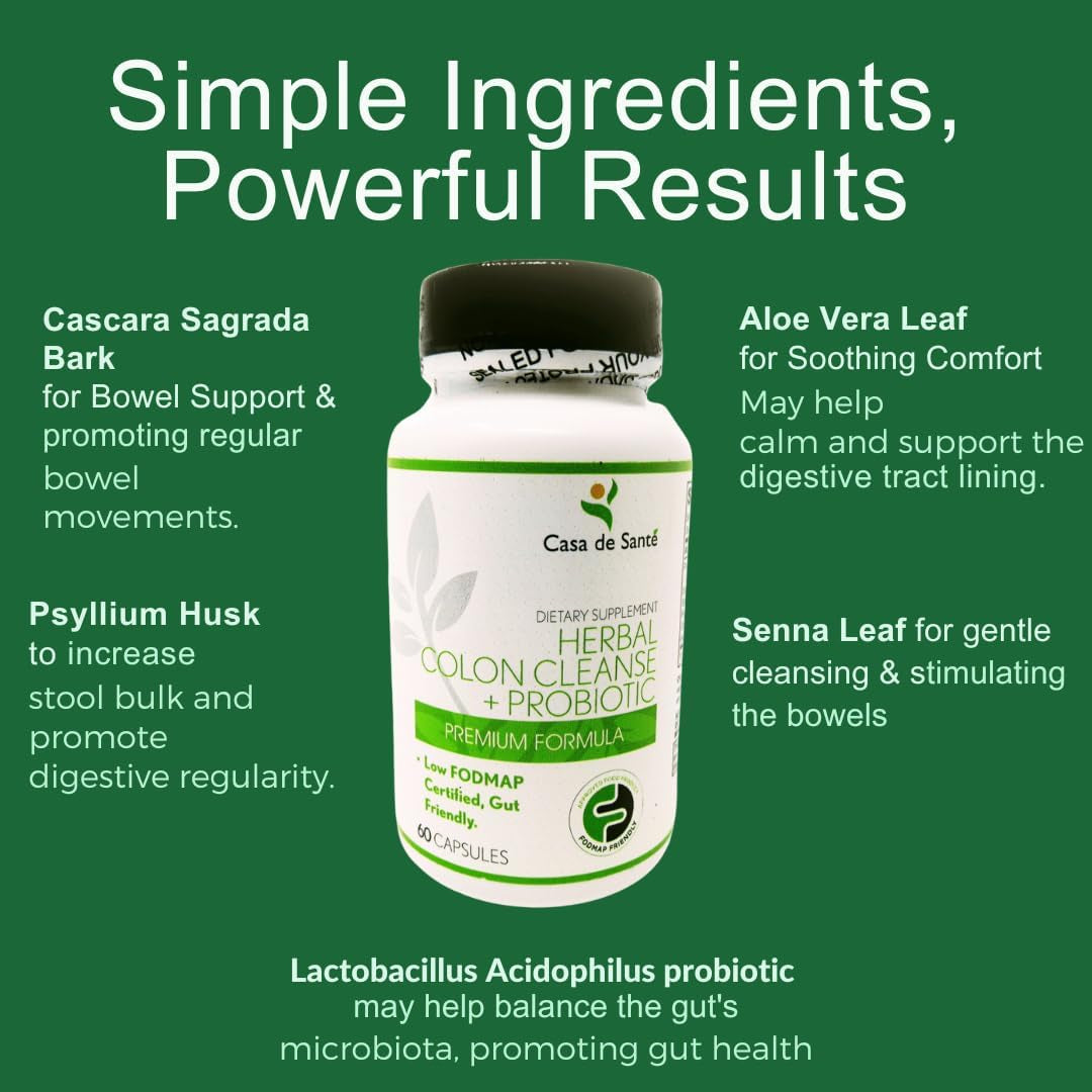 In a world lousy with health supplements, you might ask, what sets this one apart from all the rest? The truth is, the Casa de Sante probiotic is one of the best detox cleanses on the market because it is low FODMAP diet approved. No matter what your stomach is sensitive to, this dietary supplement is a great choice for you. Many people with IBS and other digestive issues may find it hard to take probiotics and colon cleanse products because they can be particularly harsh on sensitive stomachs. Luckily, we, at Casa de Sante, have taken it upon ourselves to create a colon cleanse supplement that works for people with dietary restrictions and sensitivities to certain foods. Our health supplement is completely vegan, non-GMO, and gluten, dairy, and soy free, so you can rest easy. Nothing needs to stop you from having the healthy digestive system you have always wanted. Each bottle of our premium probiotic formula comes with 60 capsules. Casa de Sante is dedicated to providing you with delicious low FODMAP foods that will work with your diet so that you’ll no longer feel like you have to sacrifice taste or quality when choosing foods and other health products. Our 100% natural detox formula is proven to work and can give you the results you desire. We promise that this super colon cleanse will make you feel lighter and more comfortable. IBS safe probiotics are hard to come by, so give your body the care it needs with these amazing detox pills. Like other cleanses, this digestion support supplement is suggested for occasional use only as excessive use may irritate the digestive tract. This natural detox can gently cleanse and flush out your system and may help relieve constipation when necessary. Try our colon cleanse and probiotic, and you’ll see amazing results.