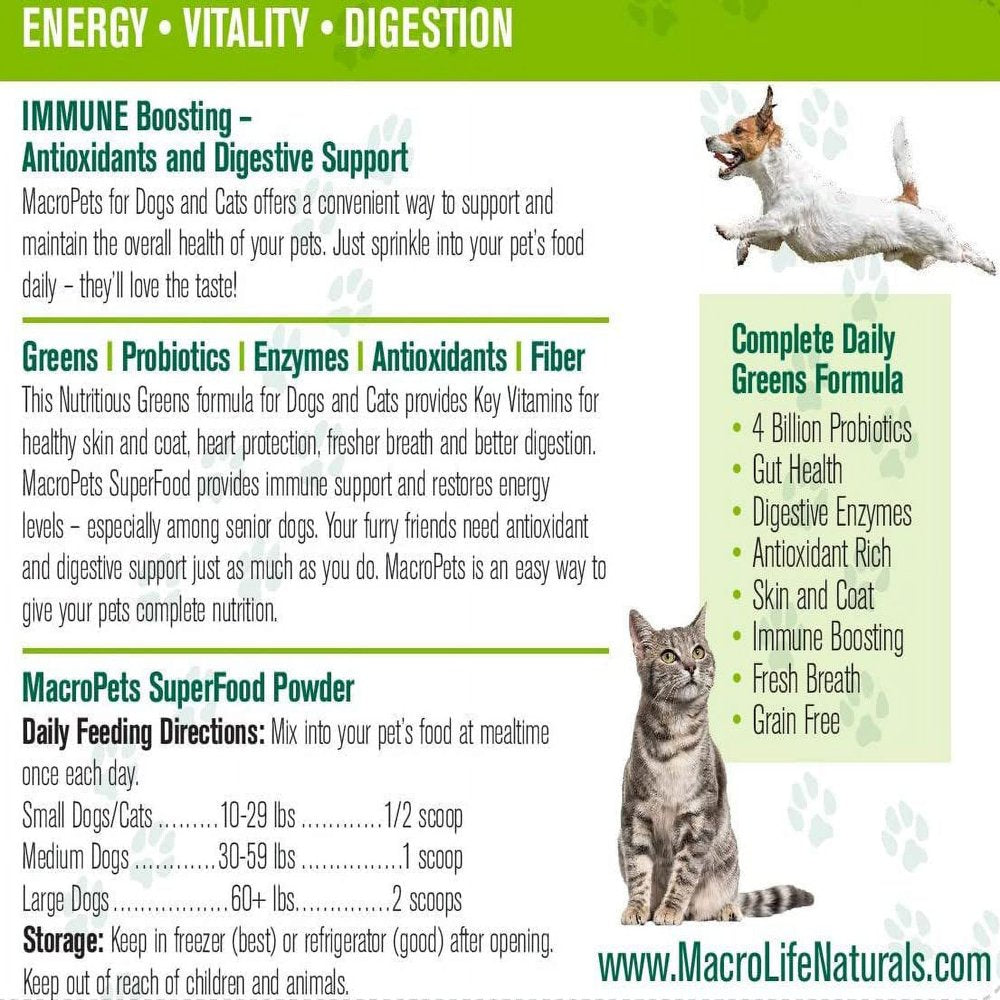 Macrolife Naturals Macropets Supplement Greens Superfood Topper Dog, Cat, Small Mammal - Natural Nutrition Boost Probiotics, Digestive Enzymes, Vitamin E - Healthy Immune, Gut Flora & Energy - 6.35Oz