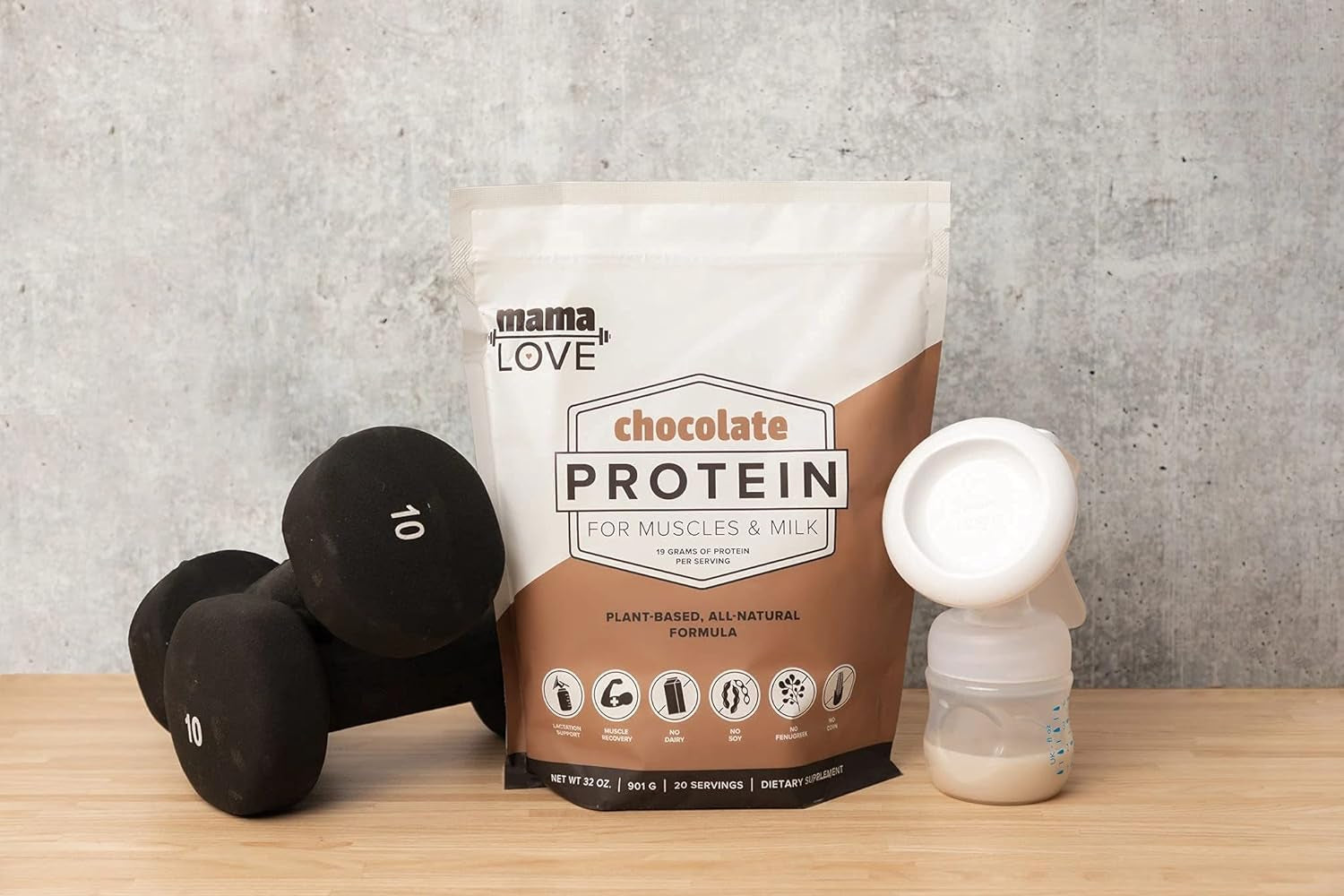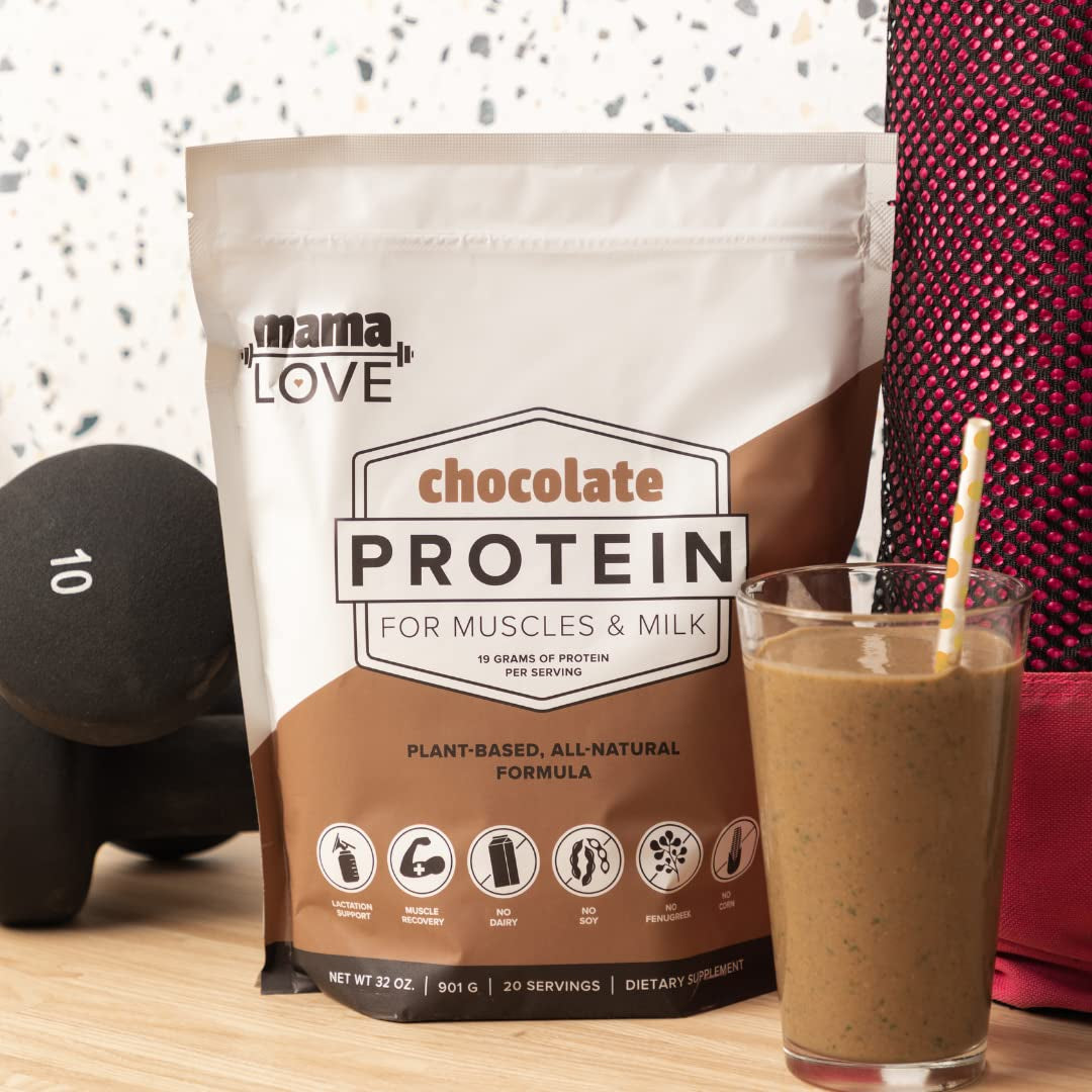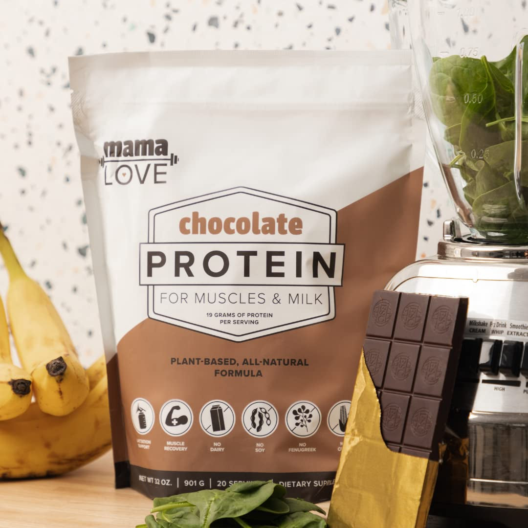 Mama Love Chocolate Protein for Muscles & Milk | Unsweetened | Supports Muscle Recovery & Breast Milk Supply in Moms | Plant Based | Vegan | Organic Ingredients | Probiotics | 20 Servings is backordered and will ship as soon as it is back in stock.