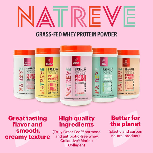 Natreve Whey Protein Powder - 28G Grass-Fed Whey Protein with Amino Acids, Probiotics & Collagen - Gluten Free Strawberry Shortcake, 18 Servings