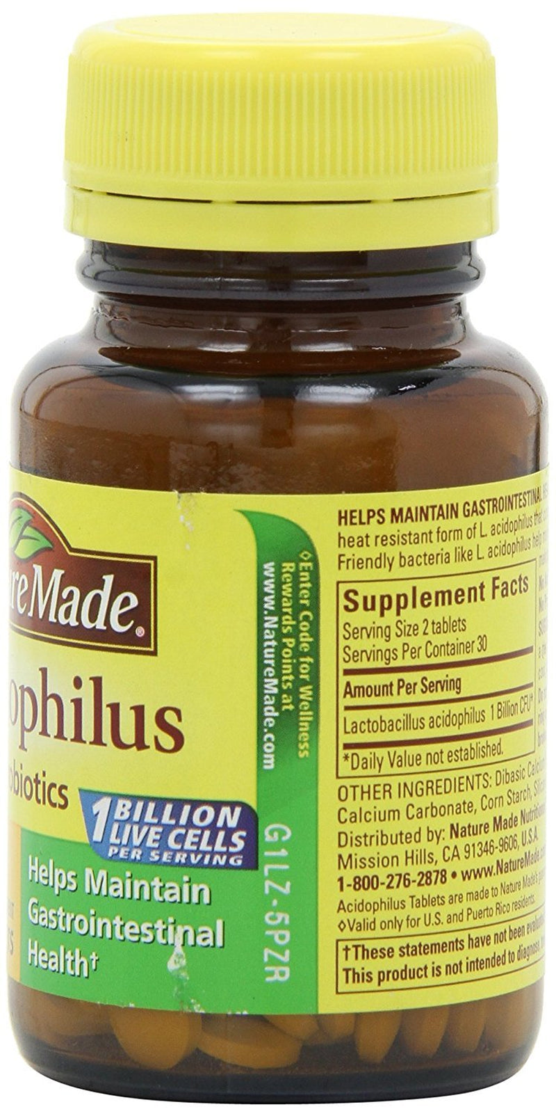 Nature Made Acidophilus is a probiotic that provides healthy bacteria to promote digestive health and helps maintain a healthy intestinal environment. Probiotics, such as Acidophilus, are friendly bacteria that colonize the human digestive tract and promote digestion and good intestinal health. Acidophilus also helps to improve intestinal motility to help maintain regularity. A healthy intestinal environment can also play a significant role in maintaining proper immune function.