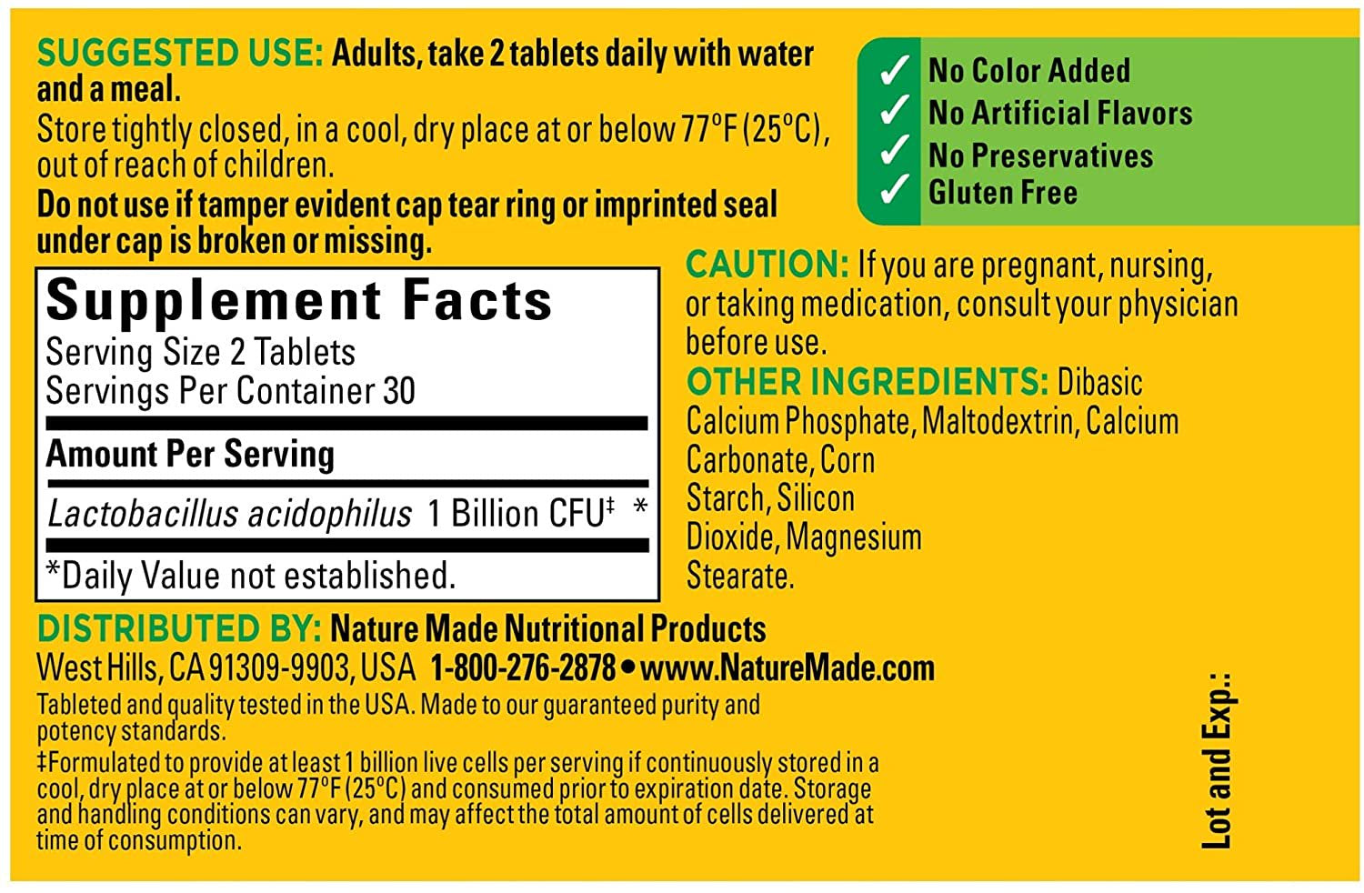 Nature Made Acidophilus Probiotics Tablets 60 Ea (Pack of 4) is backordered and will ship as soon as it is back in stock.