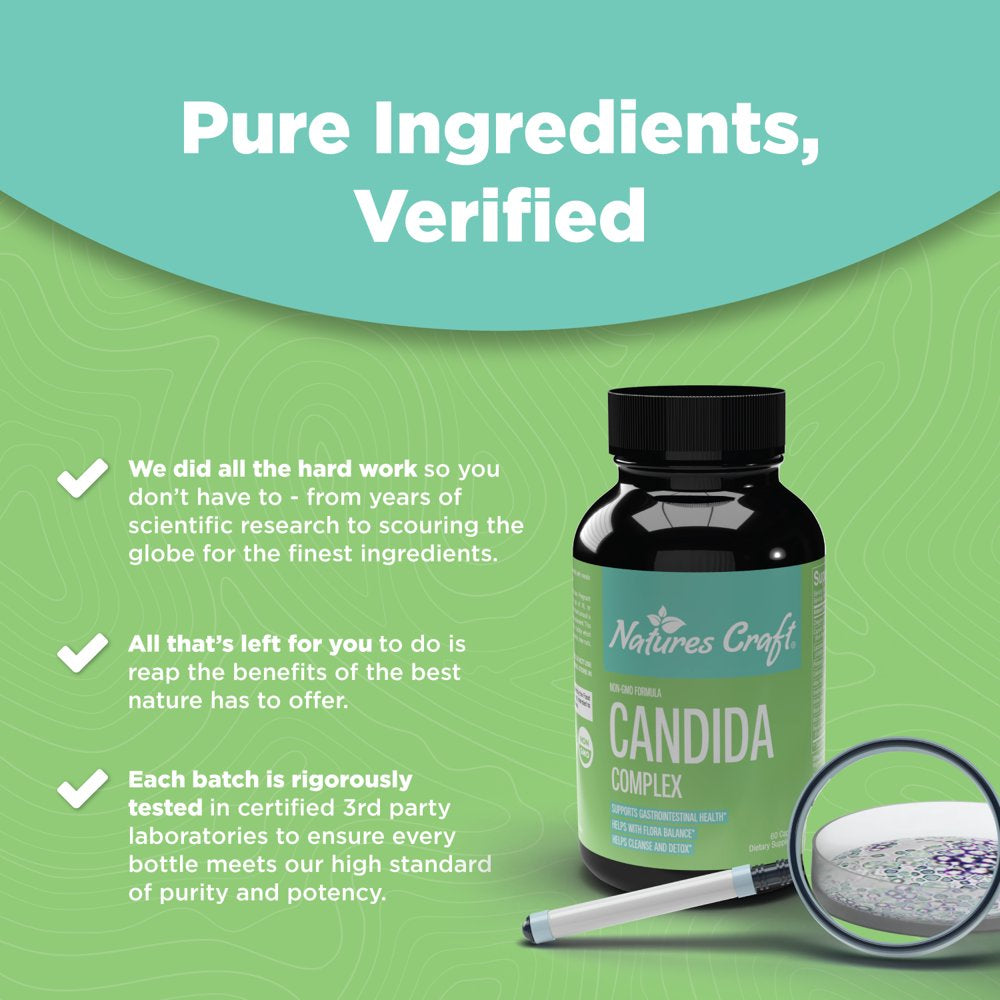 • Formulated in the USA - Natures craft supplements use only the purest herbal ingredients, and we exclusively formulated in the United States. Order a bottle of our high potency and fast acting Candida Complex pills today!