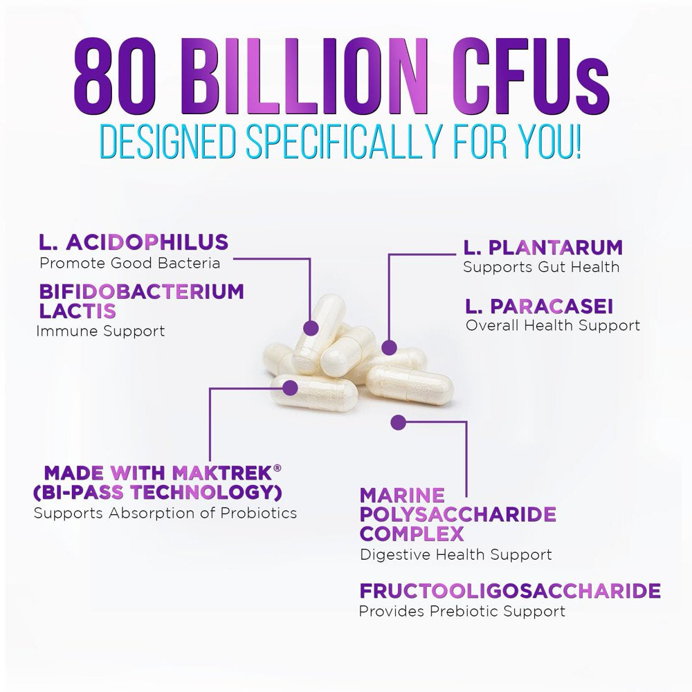 • Probiotics for Digestive Health: Digestive Support with Nature's Nutrition Probiotics 80 Billion CFU; This probiotic supplement, featuring Lactobacillus acidophilus and a robust probiotics mix, supports healthy gut flora and nutrient absorption