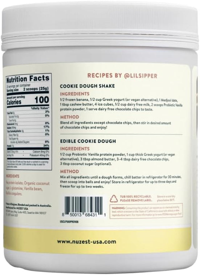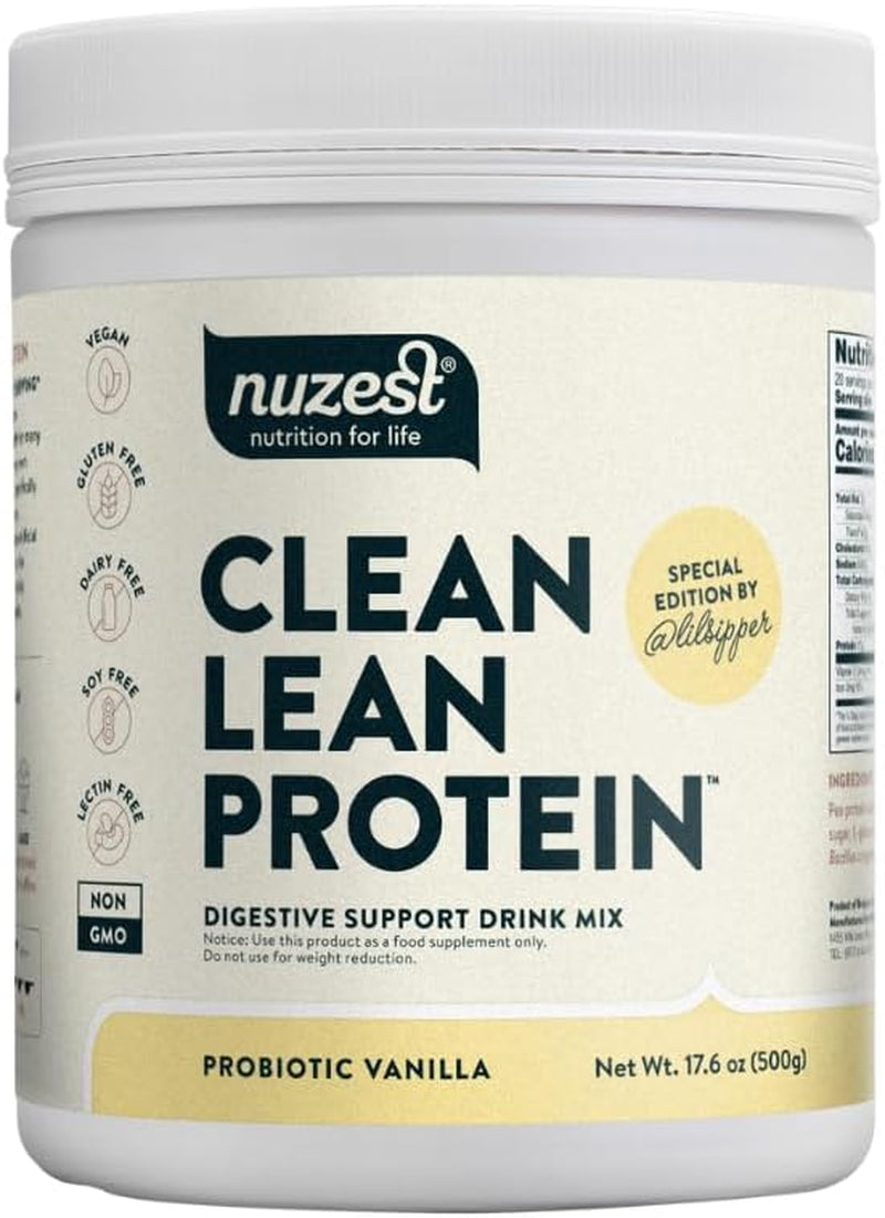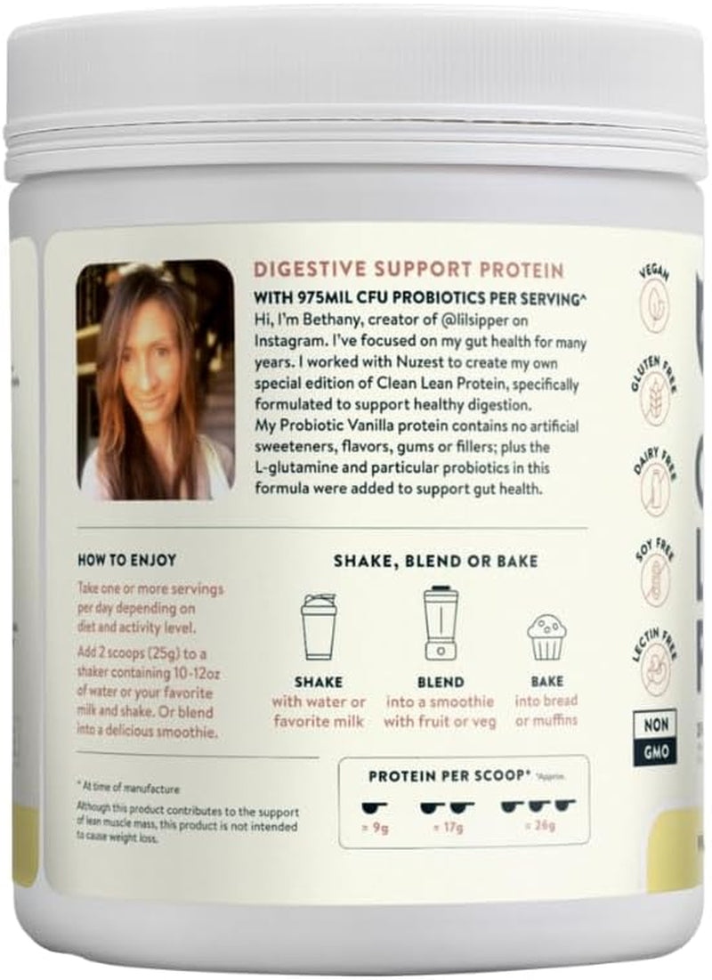 Nuzest Probiotic Vanilla Clean Lean Protein Digestive Support, Pea Protein Powder with Added Probiotics, Vegan Protein Powder, Gut Health, Non-Gmo, 20 Servings, 1.1 Lb