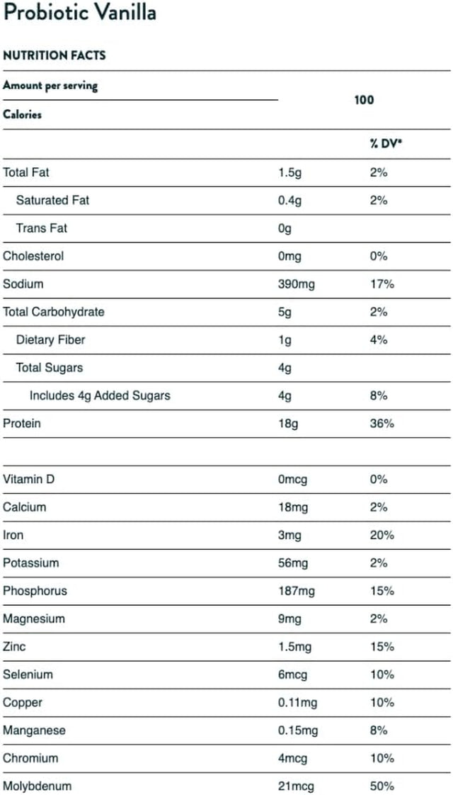 • SO SMOOTH: Not for the sweet tooth. Not chalky, gritty, or pea-y. Our protein is smooth and mild, plus it is lightly sweetened with organic coconut palm sugar and contains no stevia or artificial sweeteners. It is available in Probiotic Cacao and Probiotic Vanilla.