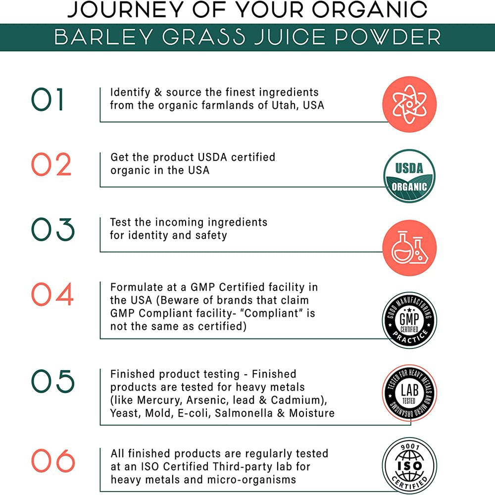 - 60 DAYS NO RISK GUARANTEE: We regularly test our products at ISO-certified third-party labs for heavy metal and pollutants like yeast, mold, E-coli & Salmonella. Whether you are using Our USDA certified organic barley grass juice powder in plain water, green smoothies, detox smoothies or soups, it does not clump and dissolves in water. If for any reason, you are not happy with your Teaveli barley grass powder, we’re always here to help make it right.