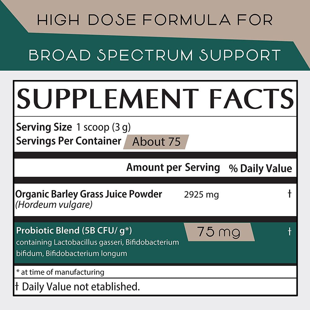 Organic Barley Grass Juice Powder with Probiotics - 8 Oz (226G)