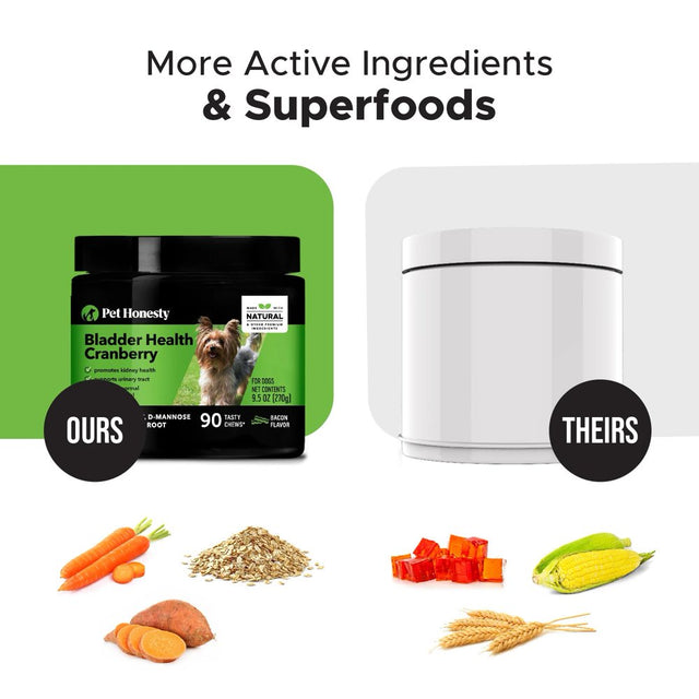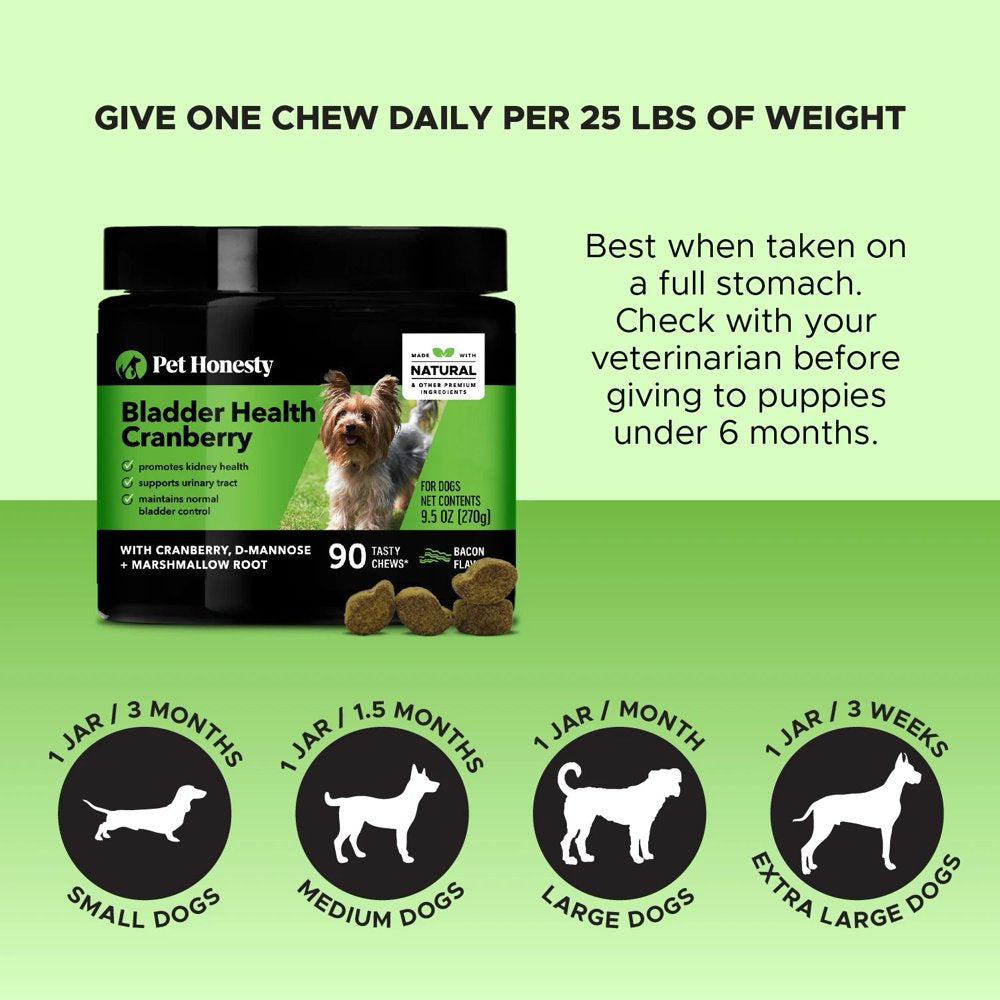 - MADE FROM NATURALLY DERIVED INGREDIENTS - Packed with Cranberry, D-Mannose, and Marshmallow Root, and Echinacea our Pet Honesty Cranberry Bladder chews help support your dog's immune system, maintain a healthy urinary tract, and balance urine pH.