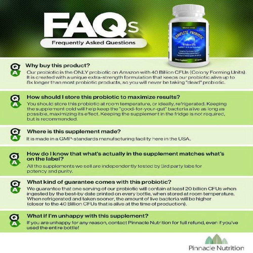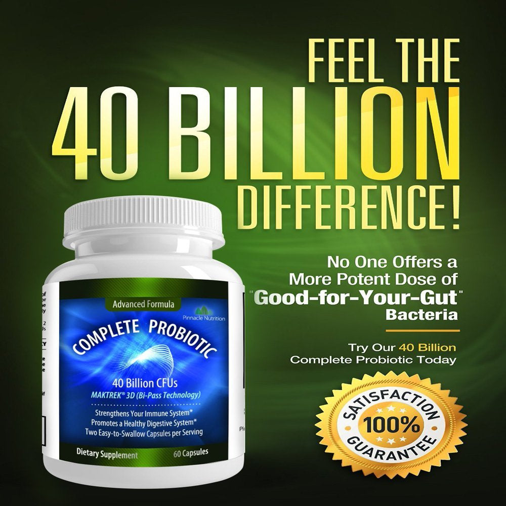 - BETTER DIGESTION FOR A BETTER YOU - Pinnacle Nutrition Probiotics is a premier blend of Lactobacillus Acidophilus & Bifidobacterium that's 40 BILLION CFU'S strong! Using one of the most potent formulations available, we ensure our probiotics make their way all the way to the large intestine where they are most effective at reducing digestive discomfort!