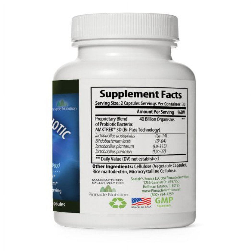 Pinnacle Nutrition 40 Billion Cfus Probiotics - Lactobacillus Acidophilus Premium Digestive Supplement to Reduce Gas, Bloating, & Constipation in Men, Women. 60 Capsules, Moneyback Guarantee Included