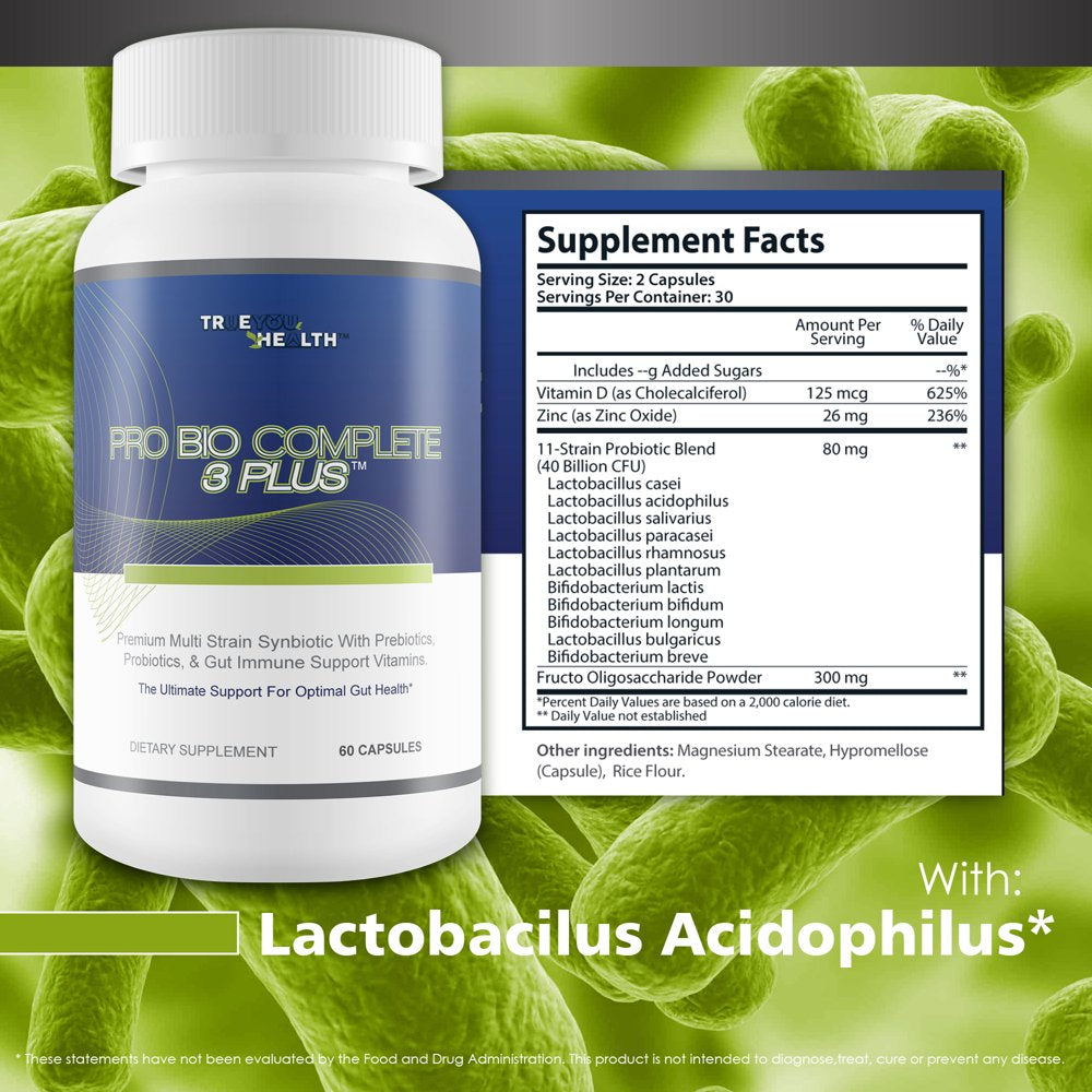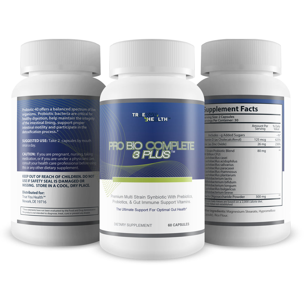 - Triple Action Synbiotic Formula - Pro Bio Complete 3 Plus is a cutting-edge synbiotic supplement that combines the benefits of prebiotics, probiotics, and gut immune support vitamins, offering a comprehensive approach to gut health, immune health, and overall well-being.