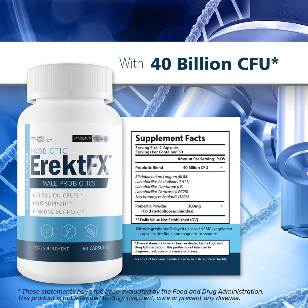 Probiotic ErektFx - Male Probiotics - Lift Your Gut Health To Support Your Overall Mind & Body - Over 40 Billion CFU’s Of Probiotics Formulated For Men - Support Improved Overall Health and Immune Function.