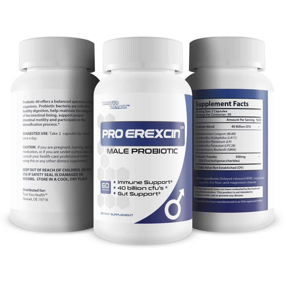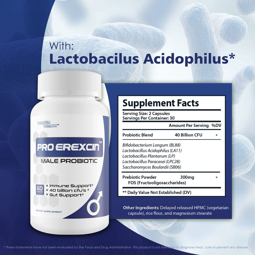 Probiotic Pro Erexcin - Male Probiotic - Support Gut Health, Natural Immune Function, & Overall Male Health - Mens Probiotic Formula Made With Premium Probiotics And Prebiotics - 40 Billion Cfu’s