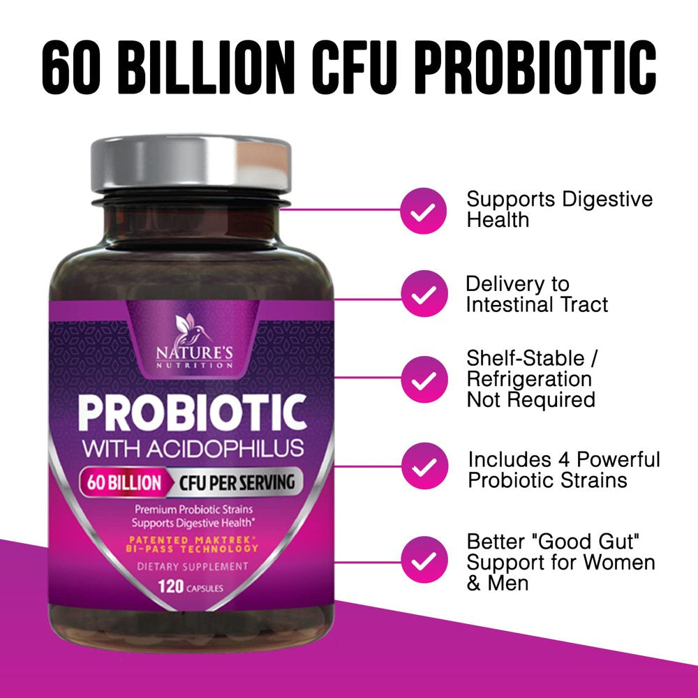 - Probiotic for Digestive Health: 60 billion cfu daily probiotics acidophilus and bifidobacterium best immune pro biotic capsules gut support supplements lactobacillus l natures nutrition prebiotics stomach strains women men bloating constipation bio raw belly booster live vag drops pills powder probotics probioticos nutritional water advantage natural vaginigal probitoic vag vaginal formulated enzymes complete digestion vitamins over 40 50 flora balance vegan vegetarian enzyme combo