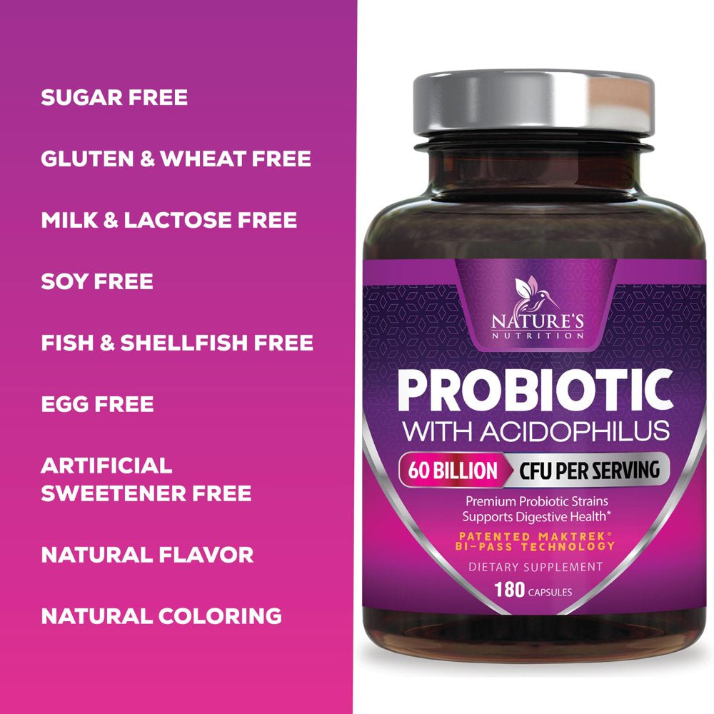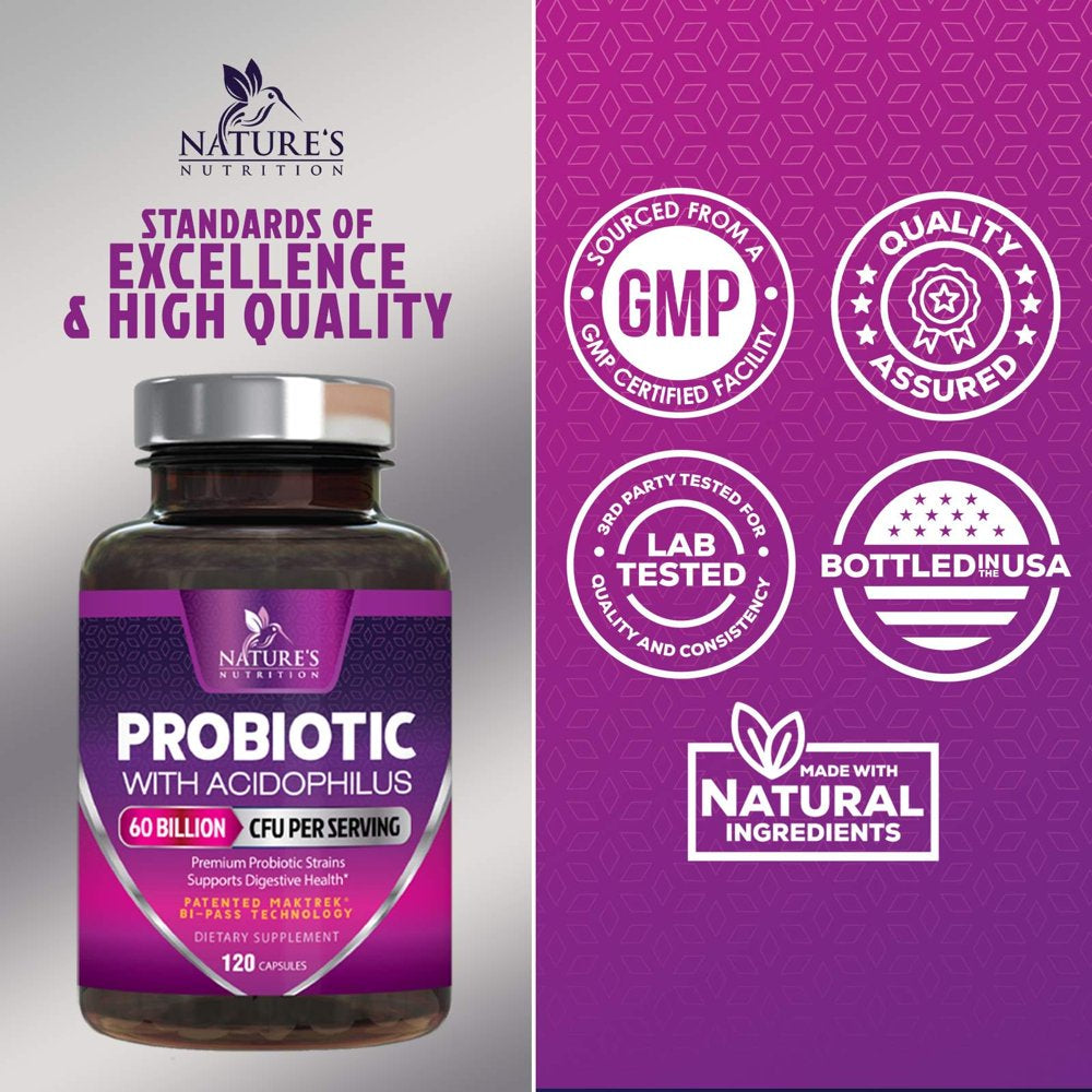 - Trusted Formula: Nature's Nutrition Probiotic supplements with 60 Billion CFU are formulated and manufactured following strict cGMP guidelines; Third party tested to ensure quality and purity