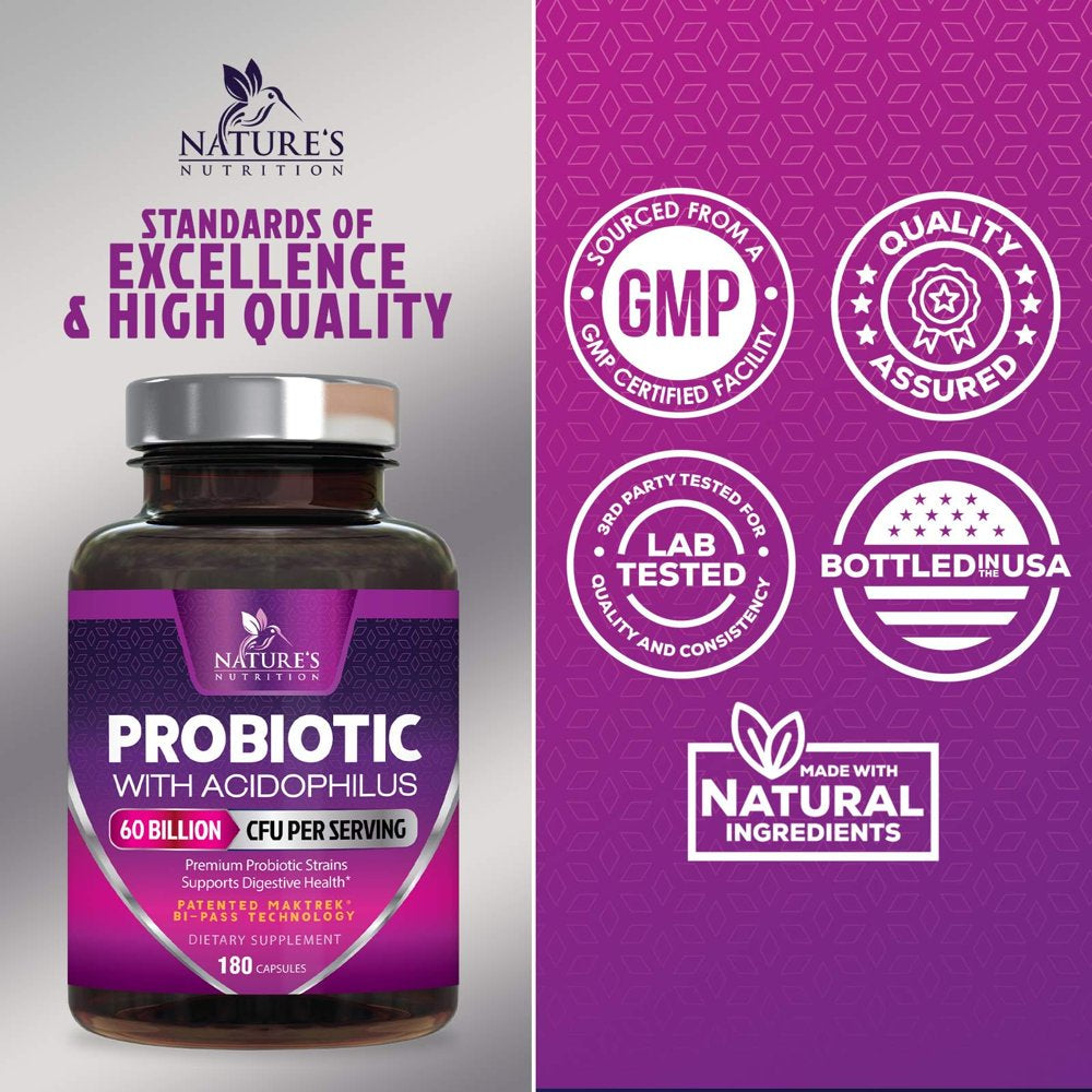 - Trusted Formula: Nature's Nutrition Probiotic supplements with 60 Billion CFU are formulated and manufactured following strict cGMP guidelines; Third party tested to ensure quality and purity