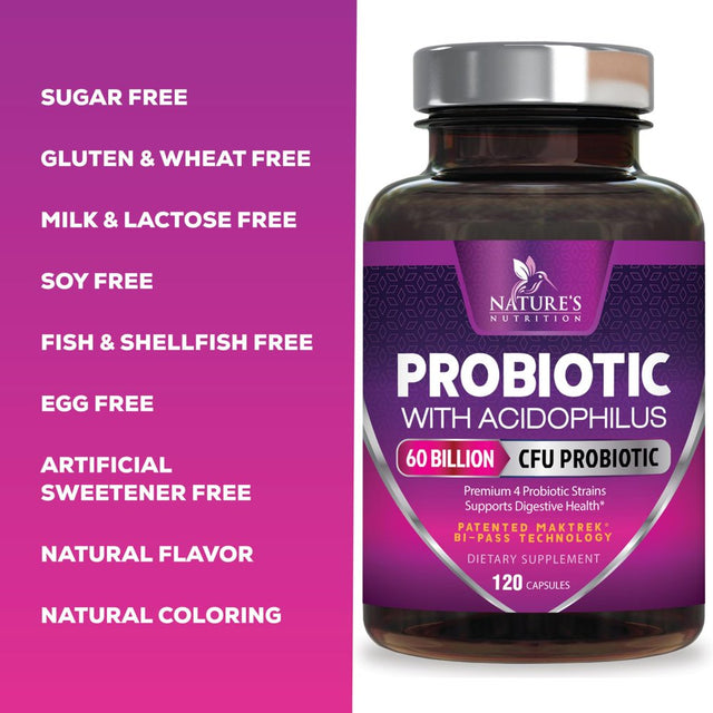 - Probiotic for Digestive Health: 60 billion cfu daily probiotics acidophilus and bifidobacterium best immune pro biotic capsules gut support supplements lactobacillus l natures nutrition prebiotics stomach strains women men bloating constipation bio raw belly booster live vag drops pills powder probotics probioticos nutritional water advantage natural vaginigal probitoic vag vaginal formulated enzymes complete digestion vitamins over 40 50 flora balance vegan vegetarian enzyme combo