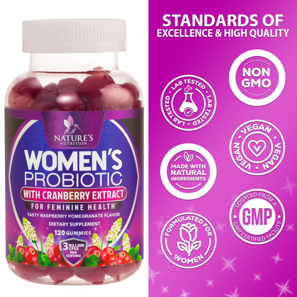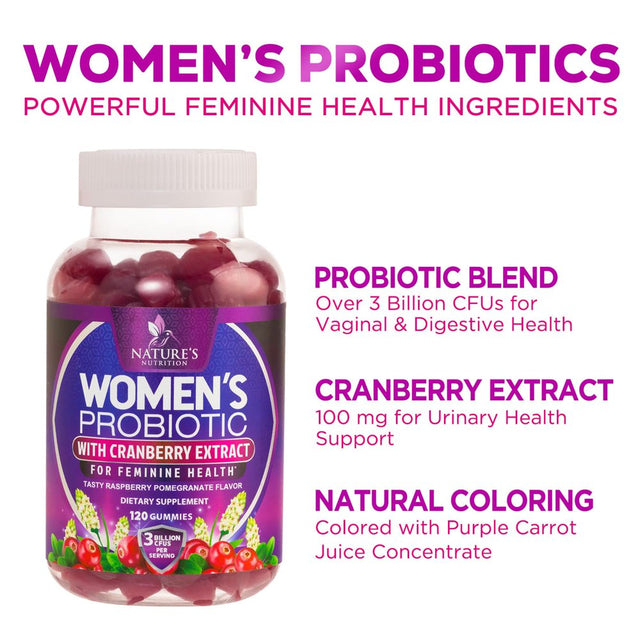 Probiotic for Women Gummies with Cranberry for Feminine Health, 3 Billion CFU Guaranteed, Nature's Probiotics for Digestive, Vaginal & Urinary Health, Immune Support Gummy, Vegan Non-GMO Gummies