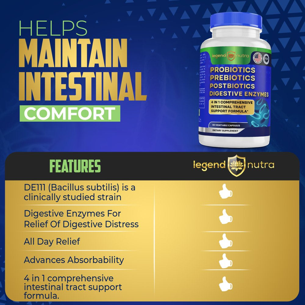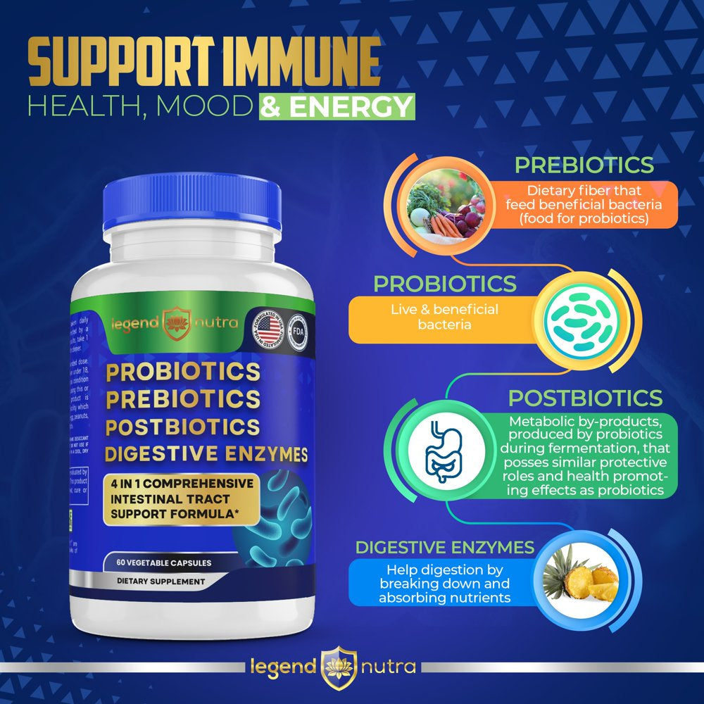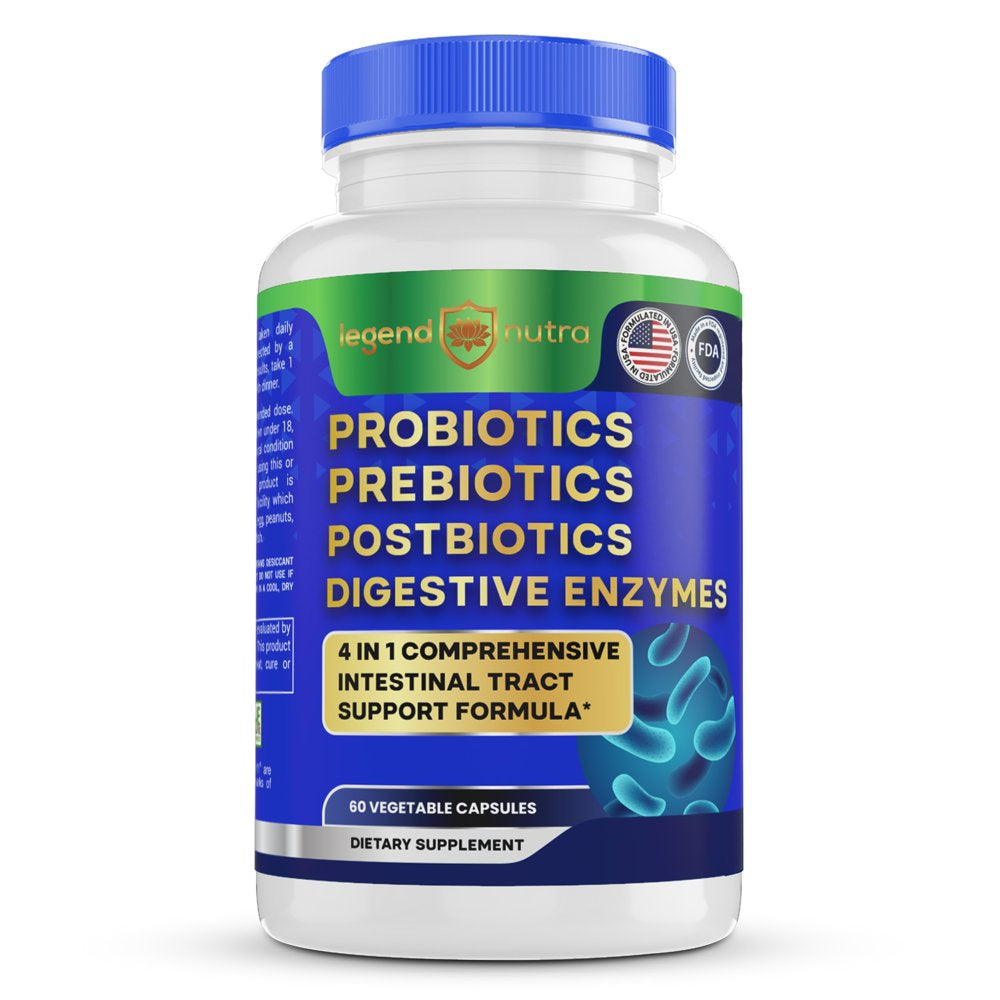 Probiotics Prebiotics Postbiotics Digestive Enzymes 4 in 1 for Men Women, 60 Ct, Legend Nutra