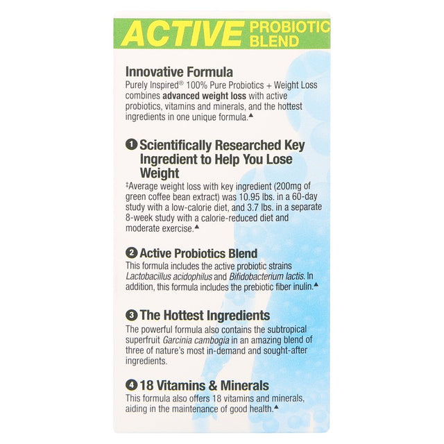 Purely Inspired Probiotics + Weight Loss with Green Tea & Garcinia, Unisex, 84 Pills
