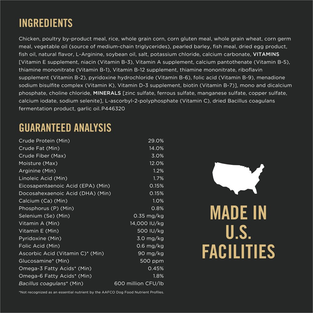 Nourish your dog's mind and help him think more like he did when he was younger with Purina Pro Plan BRIGHT MIND Adult 7+ Chicken & Rice Formula dry dog food. This senior dog food includes chicken as the first ingredient, which provides your dog with a high-quality source of protein. Glucosamine and EPA, an omega-3 fatty acid, supports your dog's joint health and mobility, while omega-6 fatty acids and vitamin A promote healthy skin and a silky coat. Around age 7, a dog's brain begins to change how it metabolizes glucose, which can affect memory, learning, awareness or decision-making. Purina discovered that enhanced botanical oils can be used to provide an additional fuel source for the brain in dogs age 7 and older. When added to the daily diet of dogs 7+, these enhanced botanical oils promoted memory and attention. You can feel good about feeding him a formula designed to deliver top-tier, highly specialized nutrition.