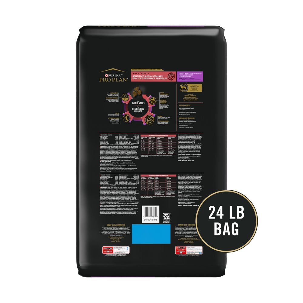 Purina Pro Plan Sensitive Skin and Stomach Dog Food with Probiotics for Dogs, Turkey & Oat Meal Formula, 24 Lb. Bag