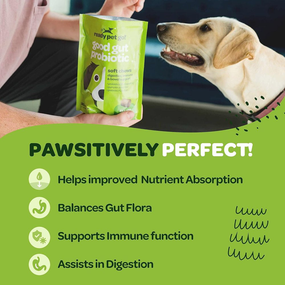 Ready Pet Go! Good Gut Probiotic | Tummy Treats for Dogs | Digestive and Immune Support | Dog Vitamins for Gut Health | Dog Probiotics for Diarrhea and Gas Relief | 90 Chews