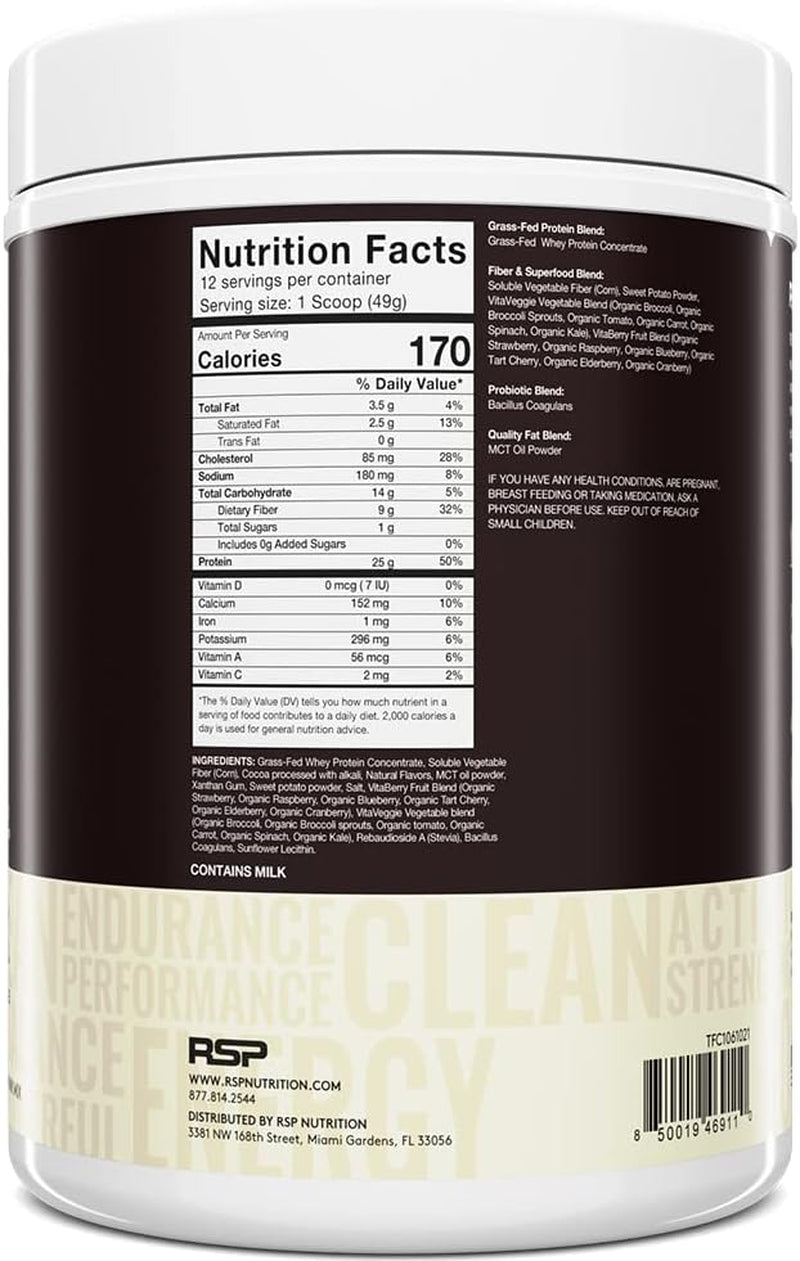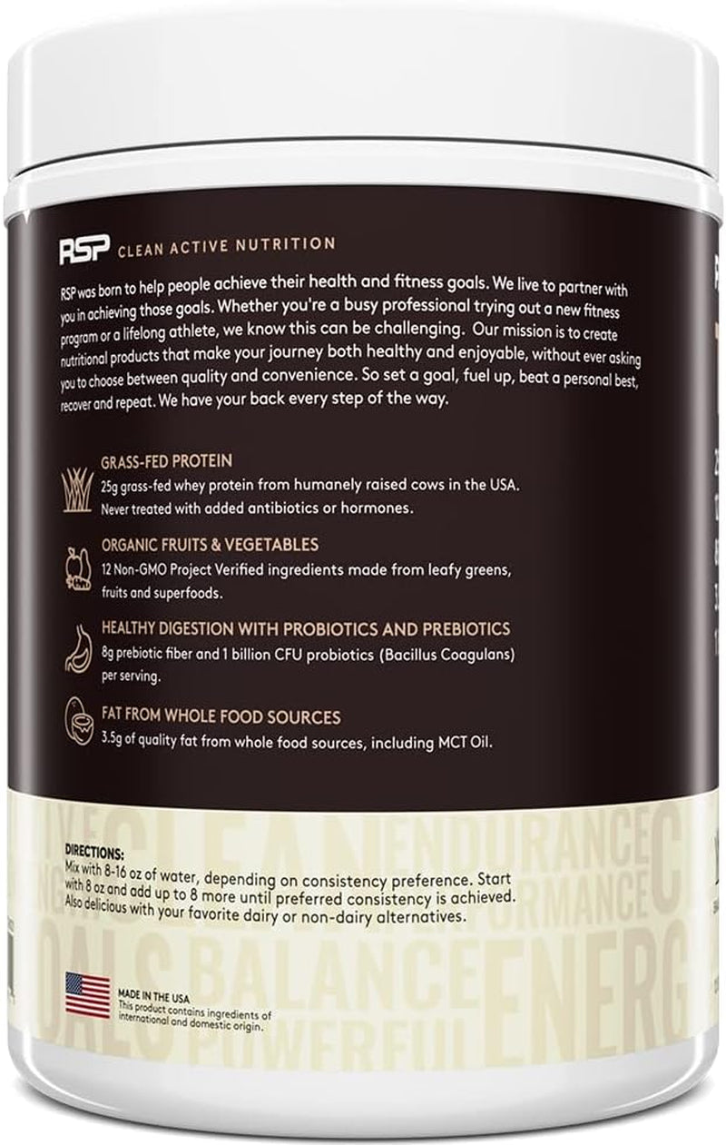 • Premium Grass Fed Whey Protein – 25g of ultra premium, grass fed whey protein that is sourced from farms in the USA, never treated with added antibiotics or hormones and naturally contains a complete amino acids profile.