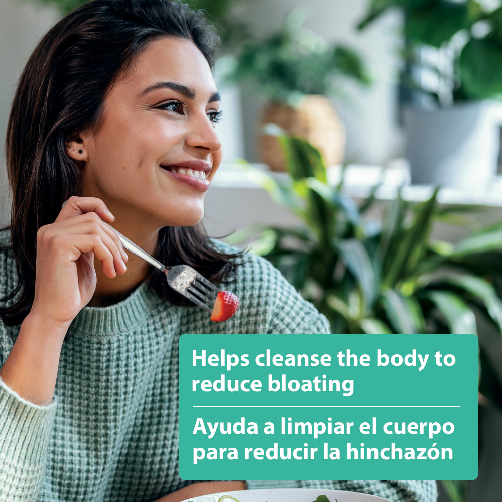 • Helps reduce water retention, excess bloating and improve overall gut health