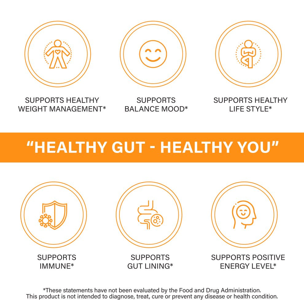 Helps Your Body and Digestive Tract- Our GUT health supplement made with clinically researched ingredients supports digestive health, healthy colon, healthy immune function, healthy weight management, positive energy level, regularity, healthy gut lining, gut microflora balance, helps reduce gas and bloating.*