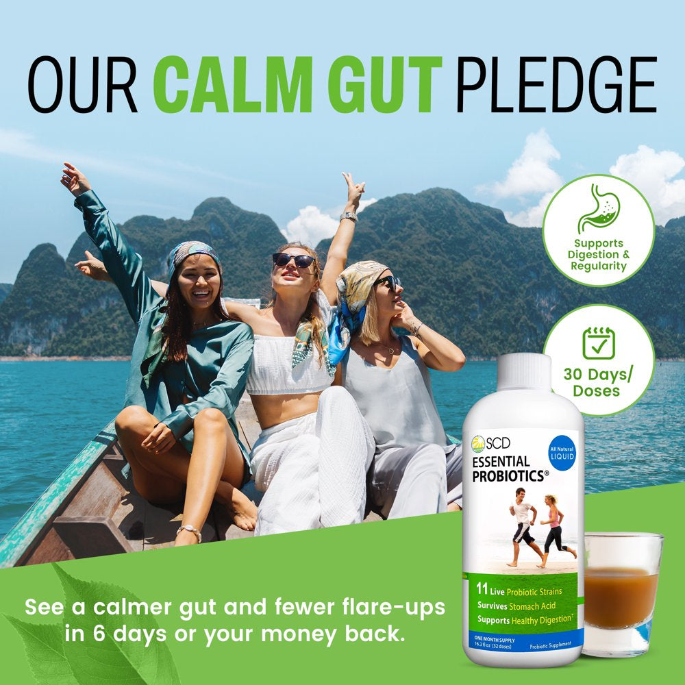 SCD Essential Probiotics - Liquid Probiotic Supplement for Women, Men & Kids with 11 Live Strains, Relieves Occasional Diarrhea, Constipation, Gas & Bloating - 16.3 Fl Oz - 16.3 Fl Oz is backordered and will ship as soon as it is back in stock.