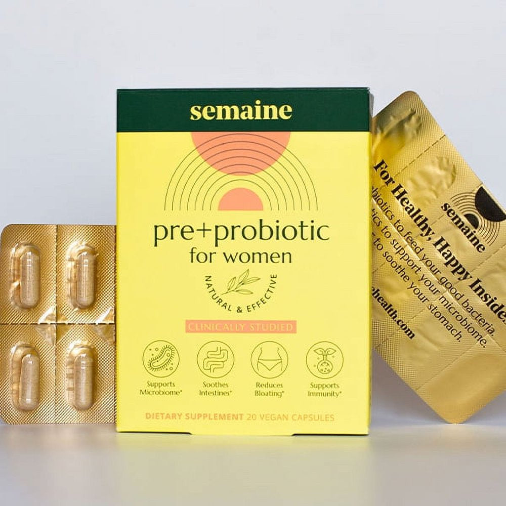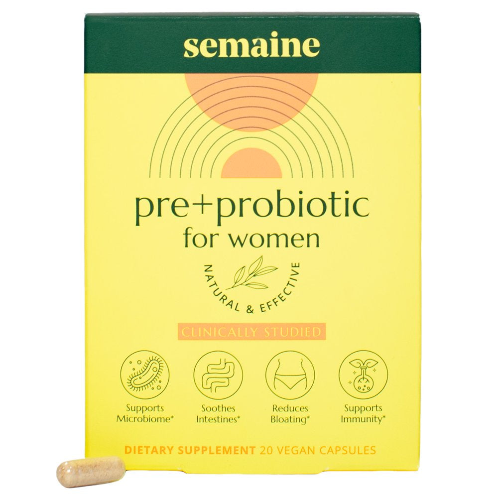 Semaine Health Pre+ Probiotic for Women, Prebiotic and Probiotic with Ginger to Soothe, Probiotics for Intestinal and Vaginal Health, 20 Count