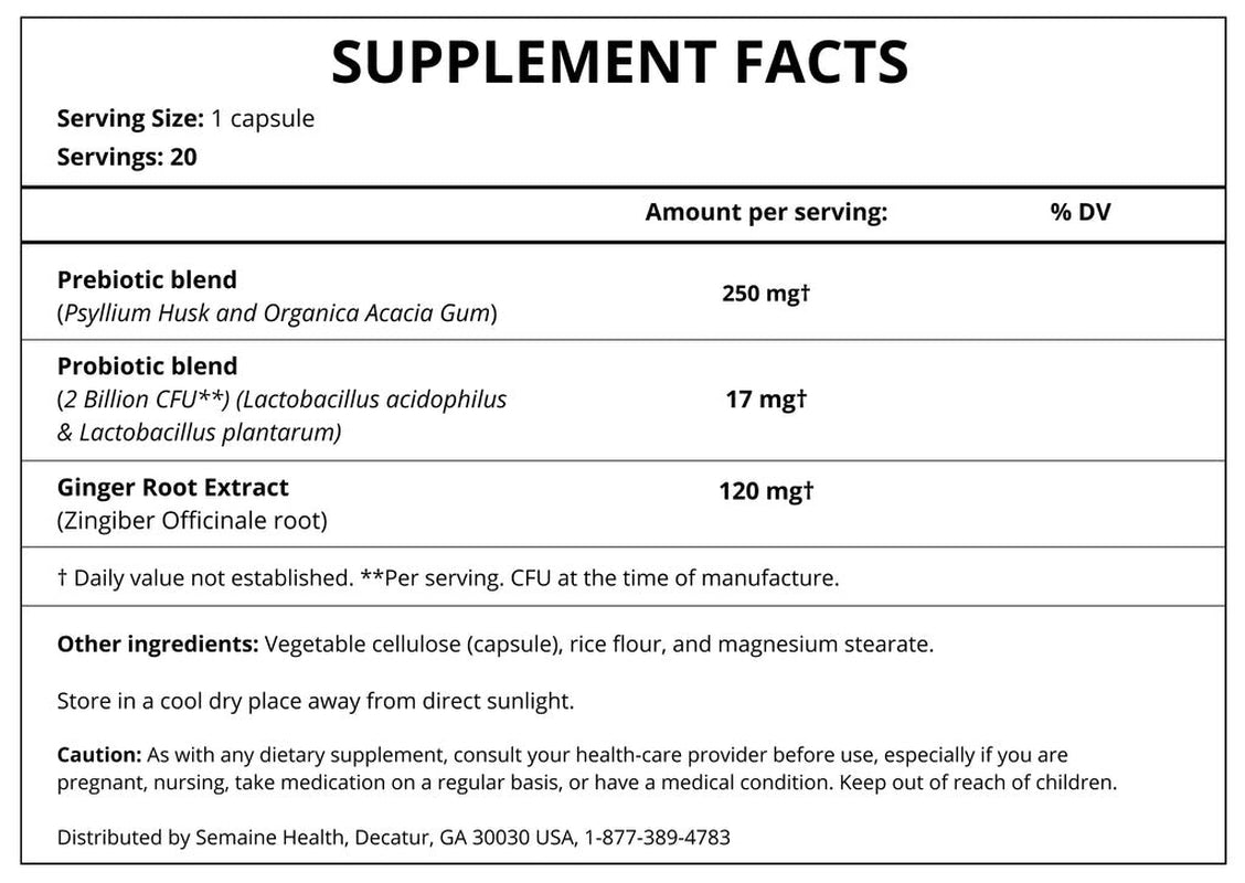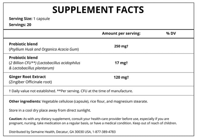 Semaine Health Pre+ Probiotic for Women, Prebiotic and Probiotic with Ginger to Soothe, Probiotics for Intestinal and Vaginal Health, 20 Count is backordered and will ship as soon as it is back in stock.