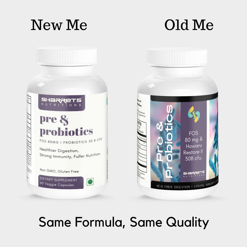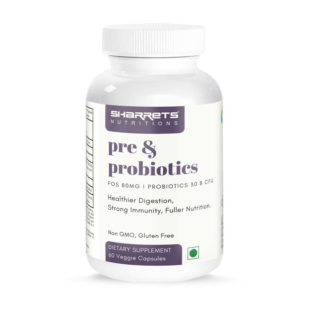 Sharrets Pre And Probiotics For Gut Health And Immunity I Prebiotics And Probiotics For Women & Men Probiotic Blend Of 30 Billion Cfu & 80Mg Of Fos Prebiotics ] 60 Veg Capsules