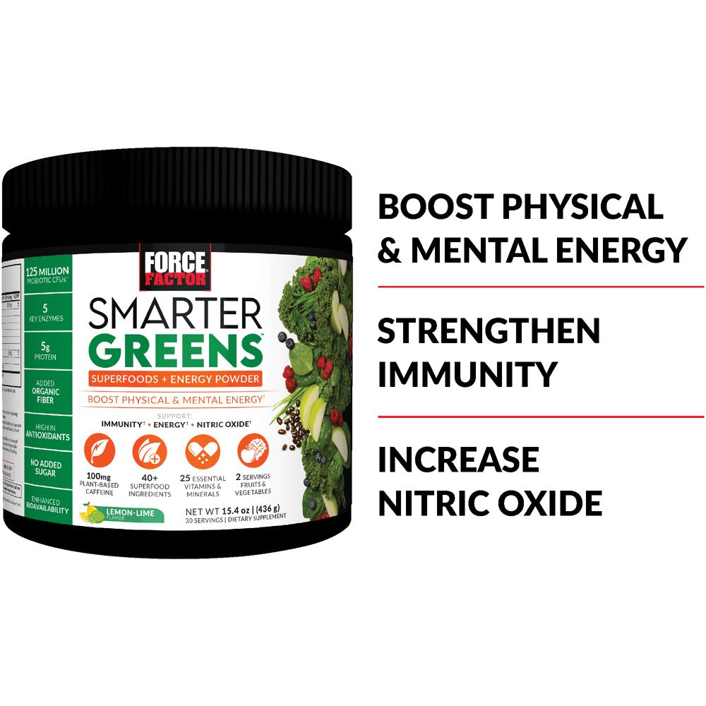 Smarter Greens Superfoods + Energy Powder, Greens Powder with Plant-Based Caffeine, Probiotics, and Digestive Enzymes, Superfood Powder to Boost Energy and Support Immunity, Force Factor, 30 Servings