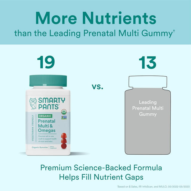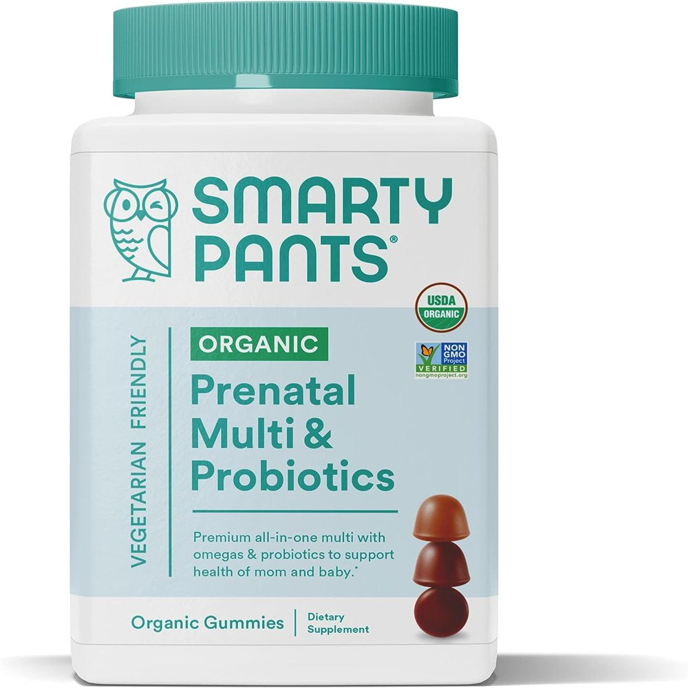 Smartypants Organic Prenatal Vitamins for Women, Multivitamin Gummies: Probiotics, Biotin, Methylfolate, Omega 3 (ALA), Vitamin D3, C, Vitamin B12, B6, Vitamin A, K & Zinc, 120 Count (30 Day Supply)