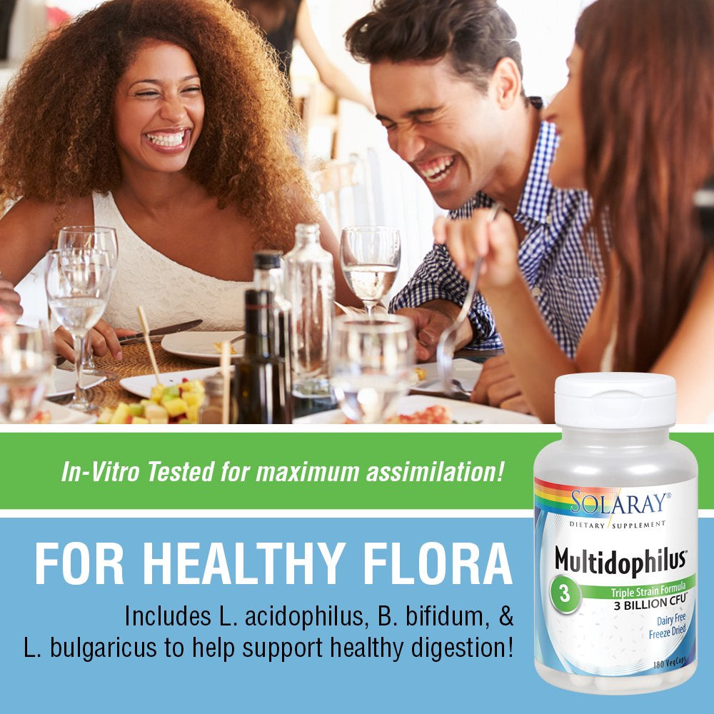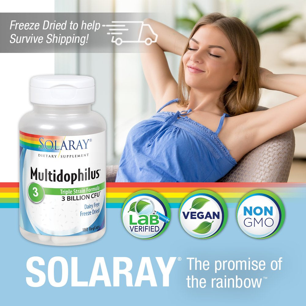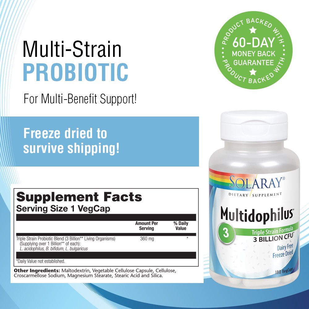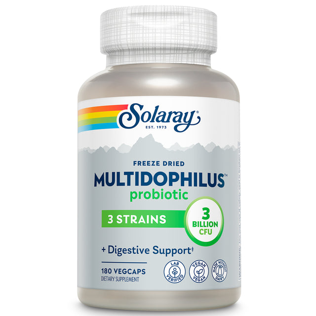 Solaray Multidophilus 3 Freeze Dried | 3 Billion CFU | Probiotics L. Acidophilus, B. Bifidum, and L. Bulgaricus for Healthy Gut Support | 180 Vegcaps