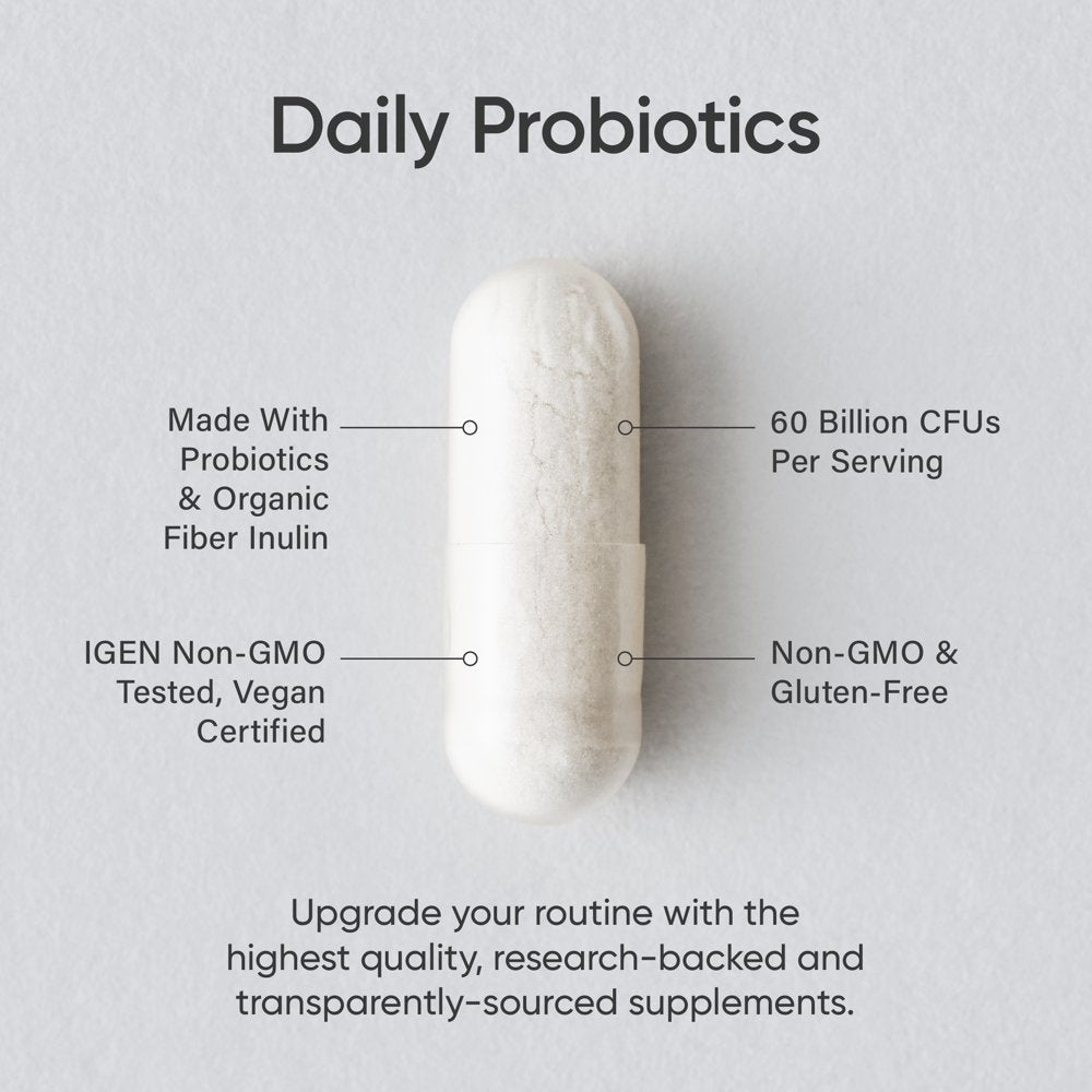 Go with your gut. Sports Research Daily Probiotics and Women's Probiotics vegan capsules provide you with the daily digestive and gut-related support you need. Say goodbye to digestive discomfort with a probiotic and Fiber Inulin blend that supports gut health. Every delayed-release veggie capsule, containing a blend of either 60 or 65 billion CFUs and 60mg of Fiber Inulin, provides guaranteed freshness through the expiration date, unlike most standard probiotics for men and women. A combination of the long-lasting formula and built-in, moisture-absorbing bottle means you can care for your body, longer. For all Sports Research supplements, we only use ingredients of the highest quality, so you can rest assured that you’re consuming probiotic nutritional supplements that are gluten-free, cGMP compliant and IGEN non-GMO verified, Vegan Certified, and free of fillers and artificial colors. With over 40 years of innovation in sports nutrition, we are dedicated to helping you perform your best.