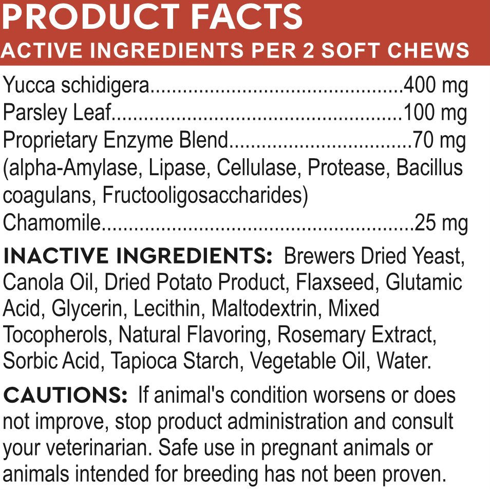 - Breath Aid - chews contain natural breath freshening blend of parsley and chamomile to provide oral care and make kisses and hugs even more pleasant than ever.